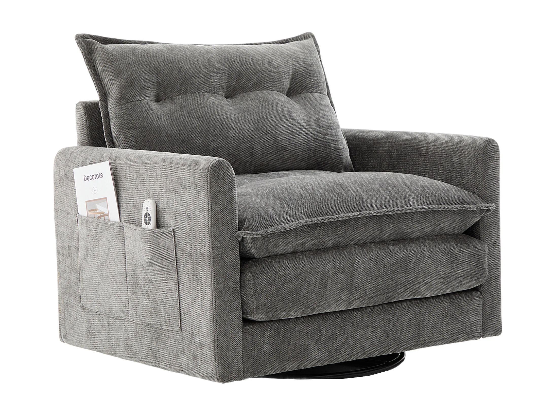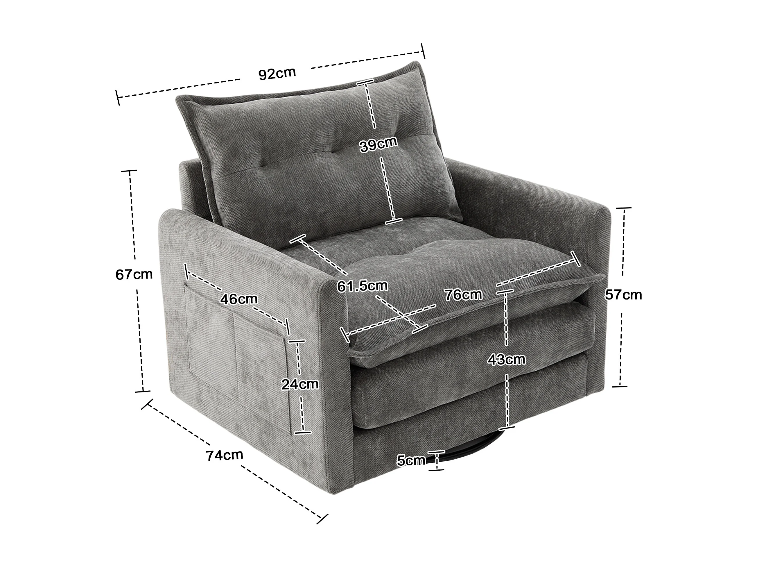 Fauteuil paresseux gris - Chaise longue avec coussins et sac de rangement - pivotant à 360° - pour salon, chambre, bureau et bureau