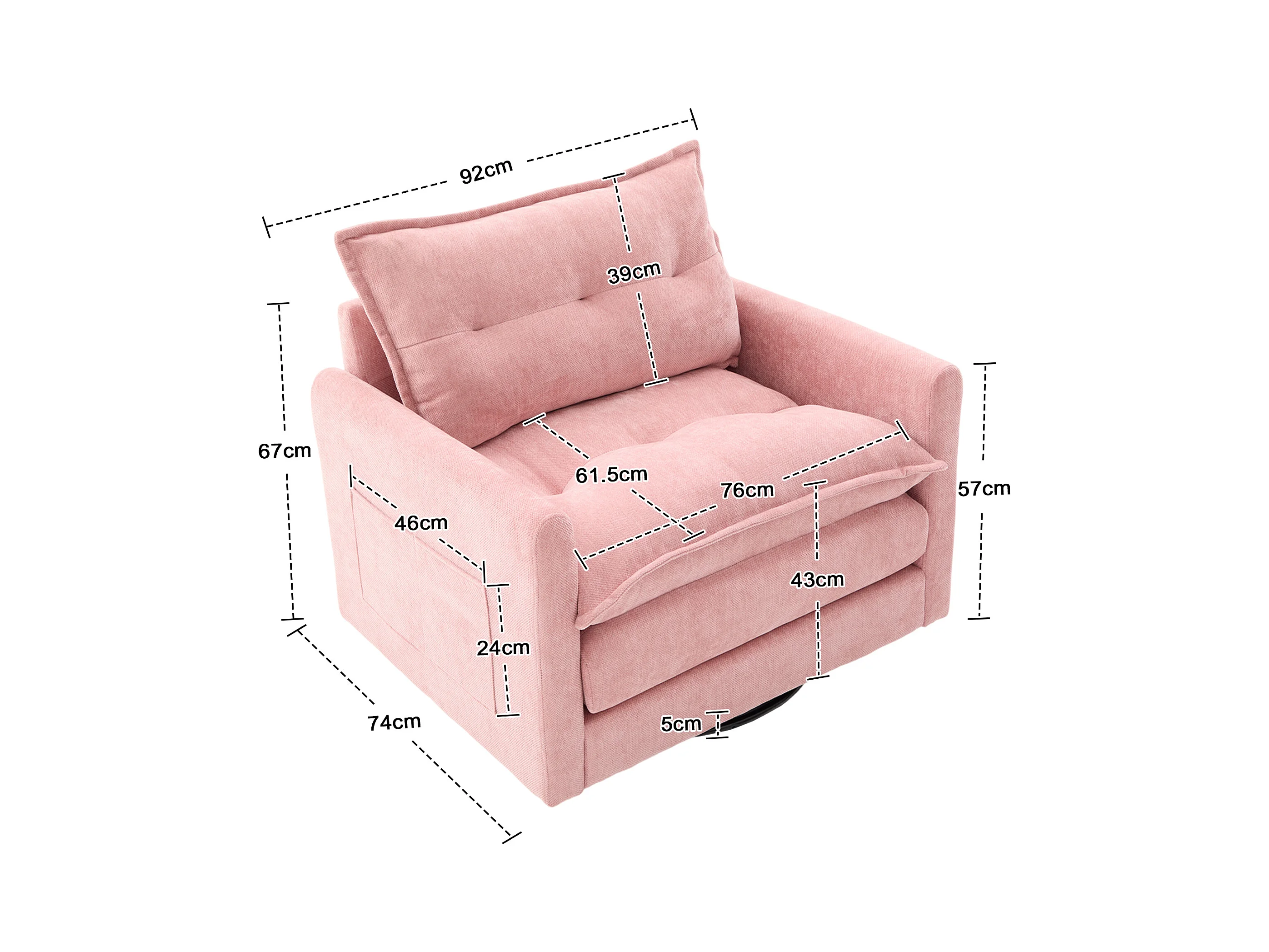 Fauteuil paresseux rose - Chaise longue avec coussins et sac de rangement - pivotant à 360° - pour salon, chambre, bureau et bureau