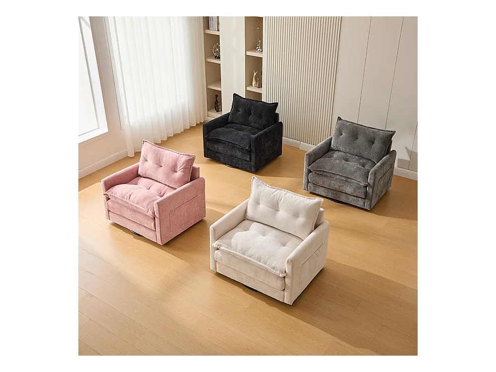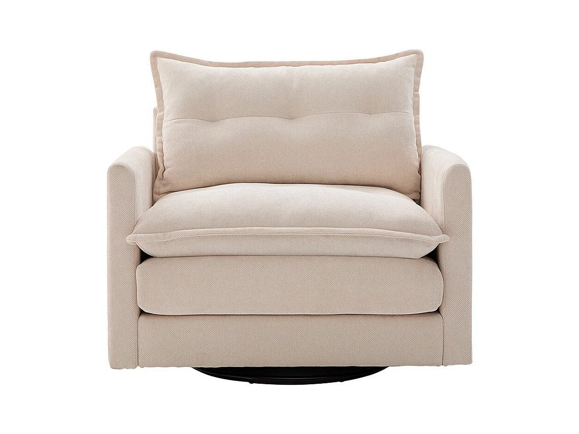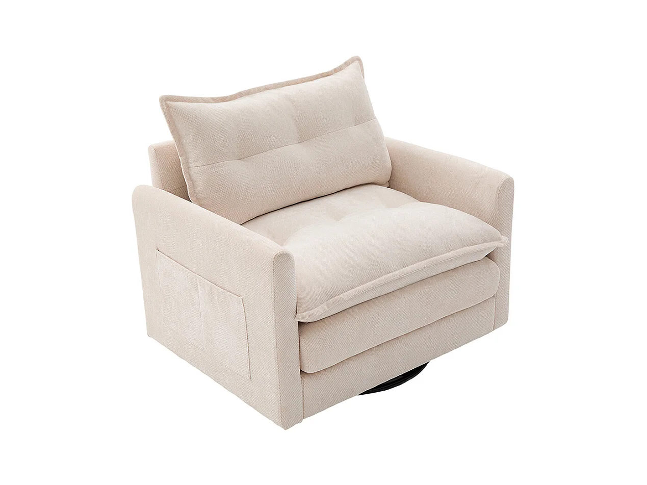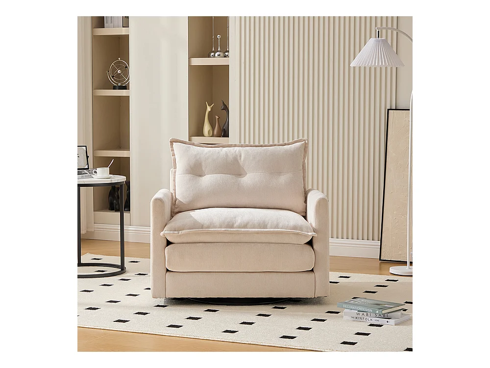 Fauteuil pivotant 360 degrés accoudoirs grand confortable salon bureau détente coussins beige