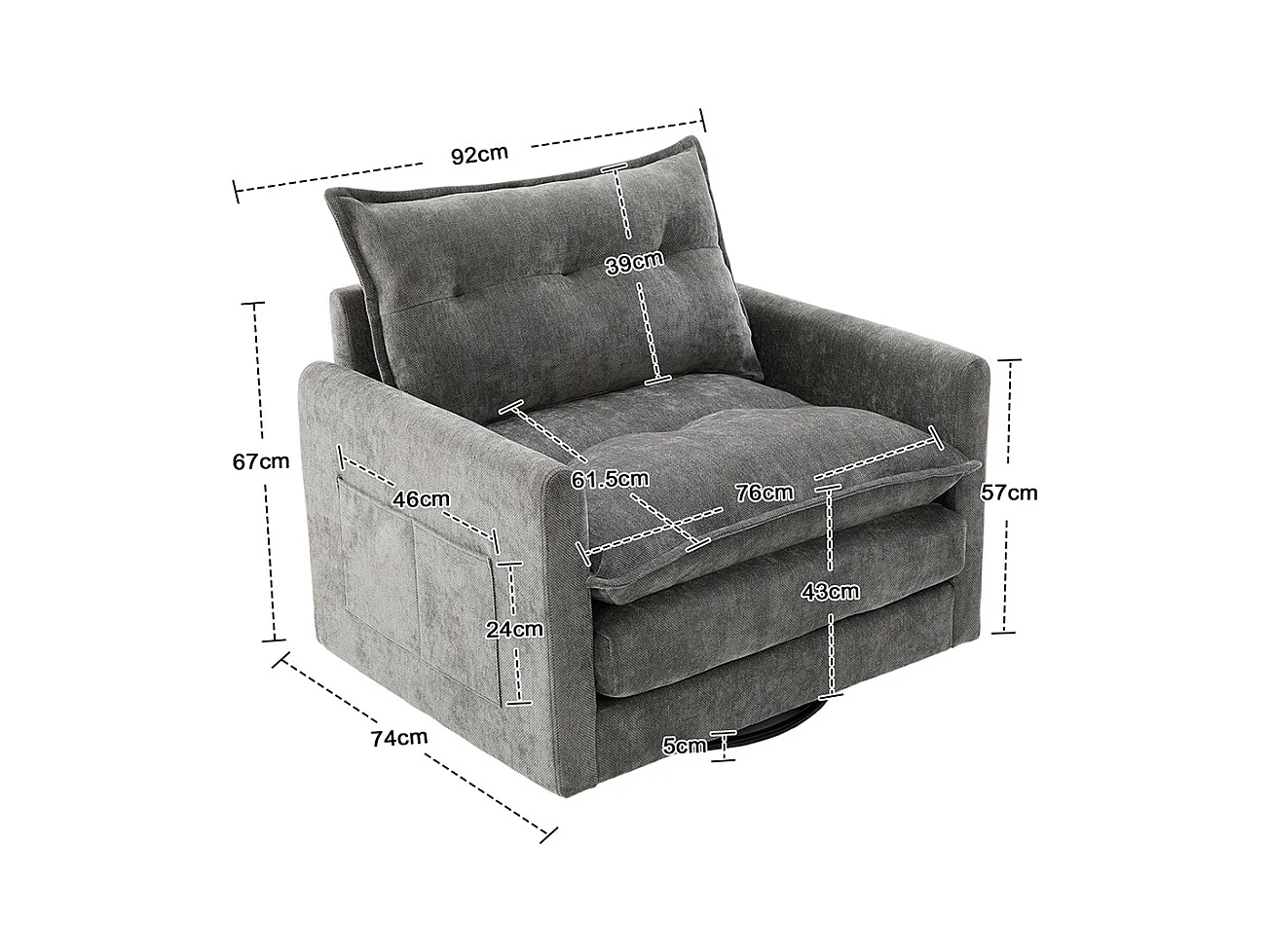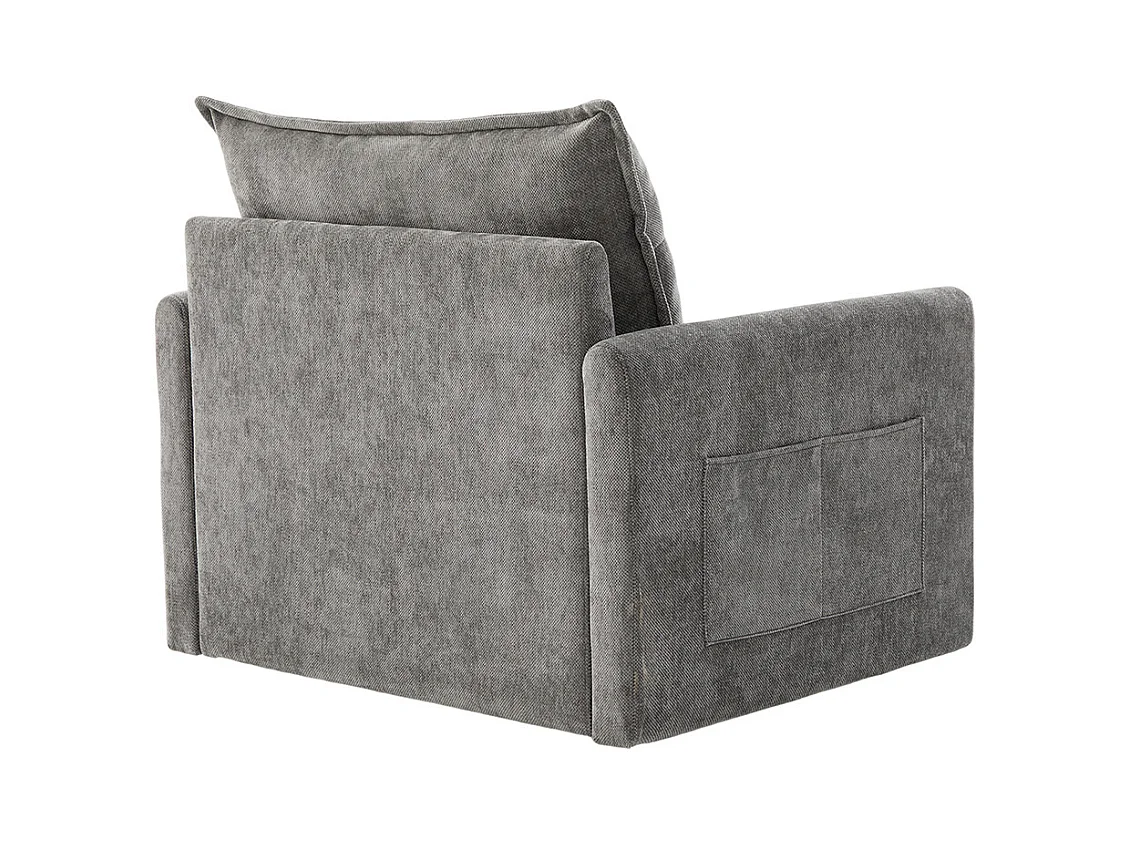 Fauteuil pivotant 360 degrés accoudoirs grand confortable salon bureau détente coussins gris