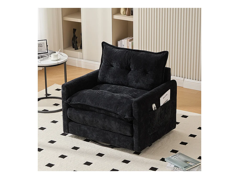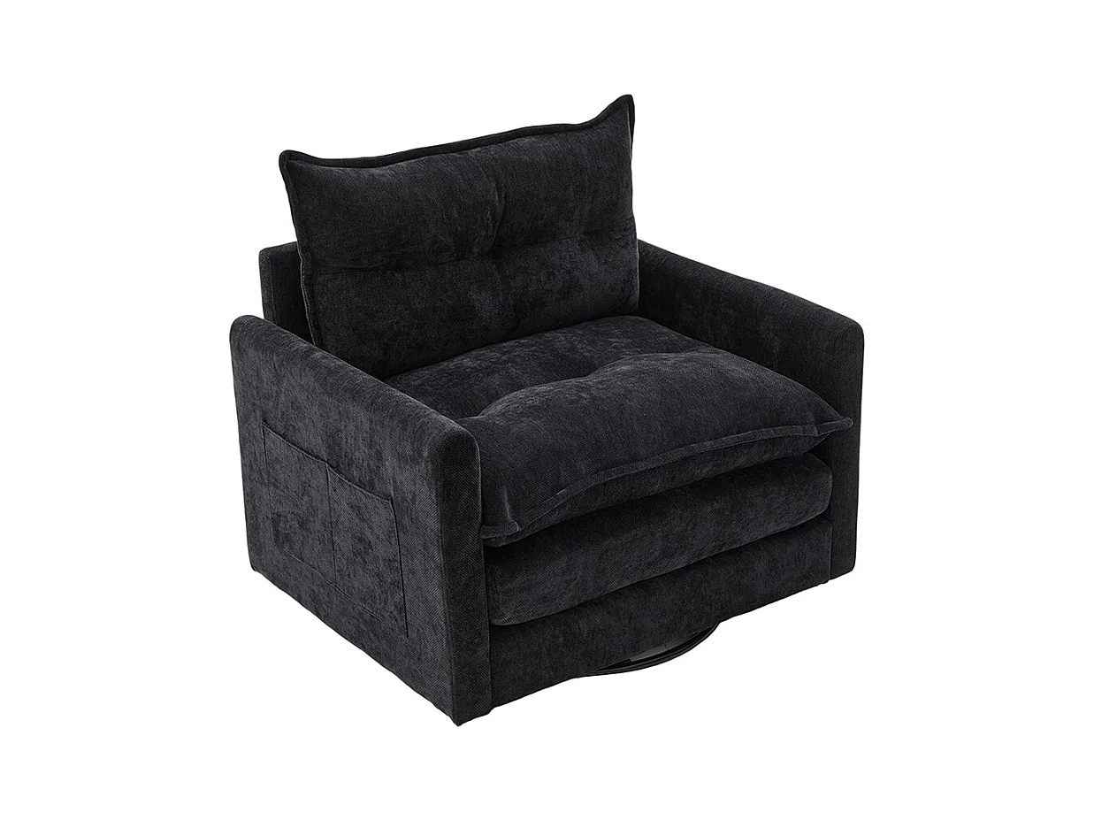 Fauteuil pivotant 360 degrés accoudoirs grand confortable salon bureau détente coussins noir