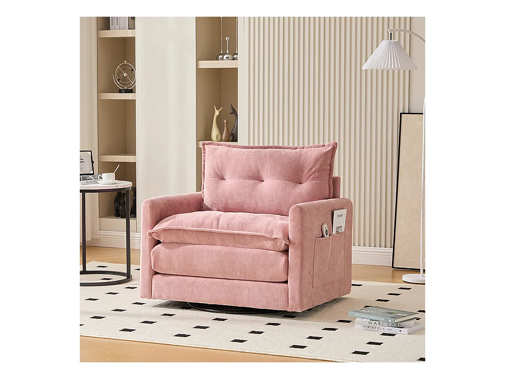 Fauteuil pivotant 360 degrés accoudoirs grand confortable salon bureau détente coussins rose