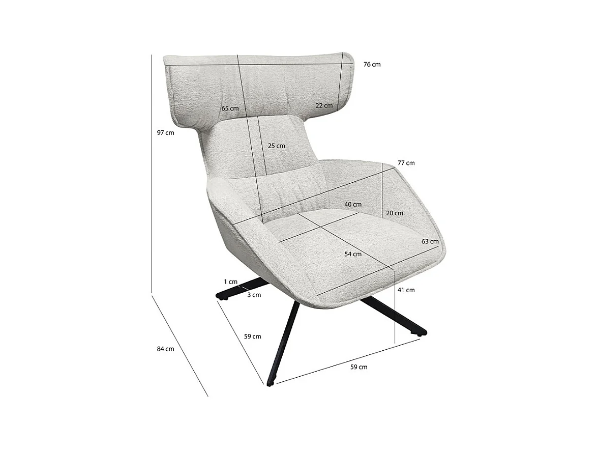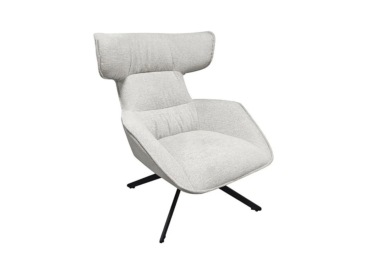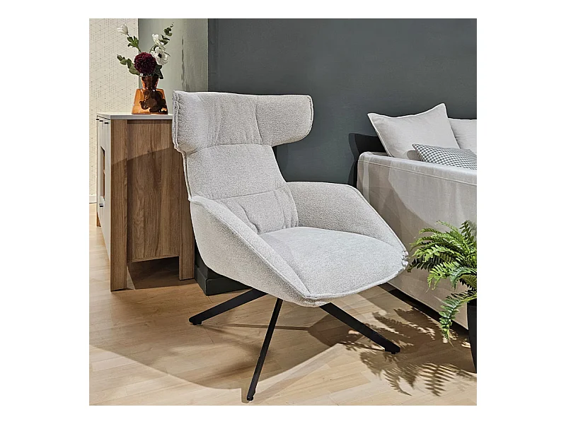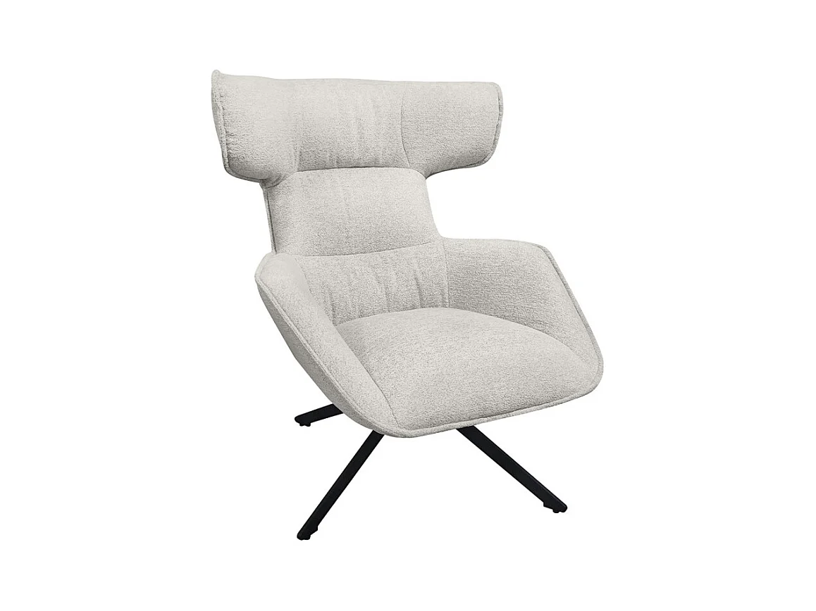Fauteuil pivotant 360° en velours chiné écru et métal noir - ANTONIO