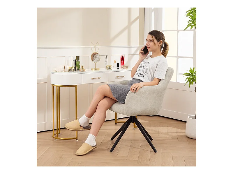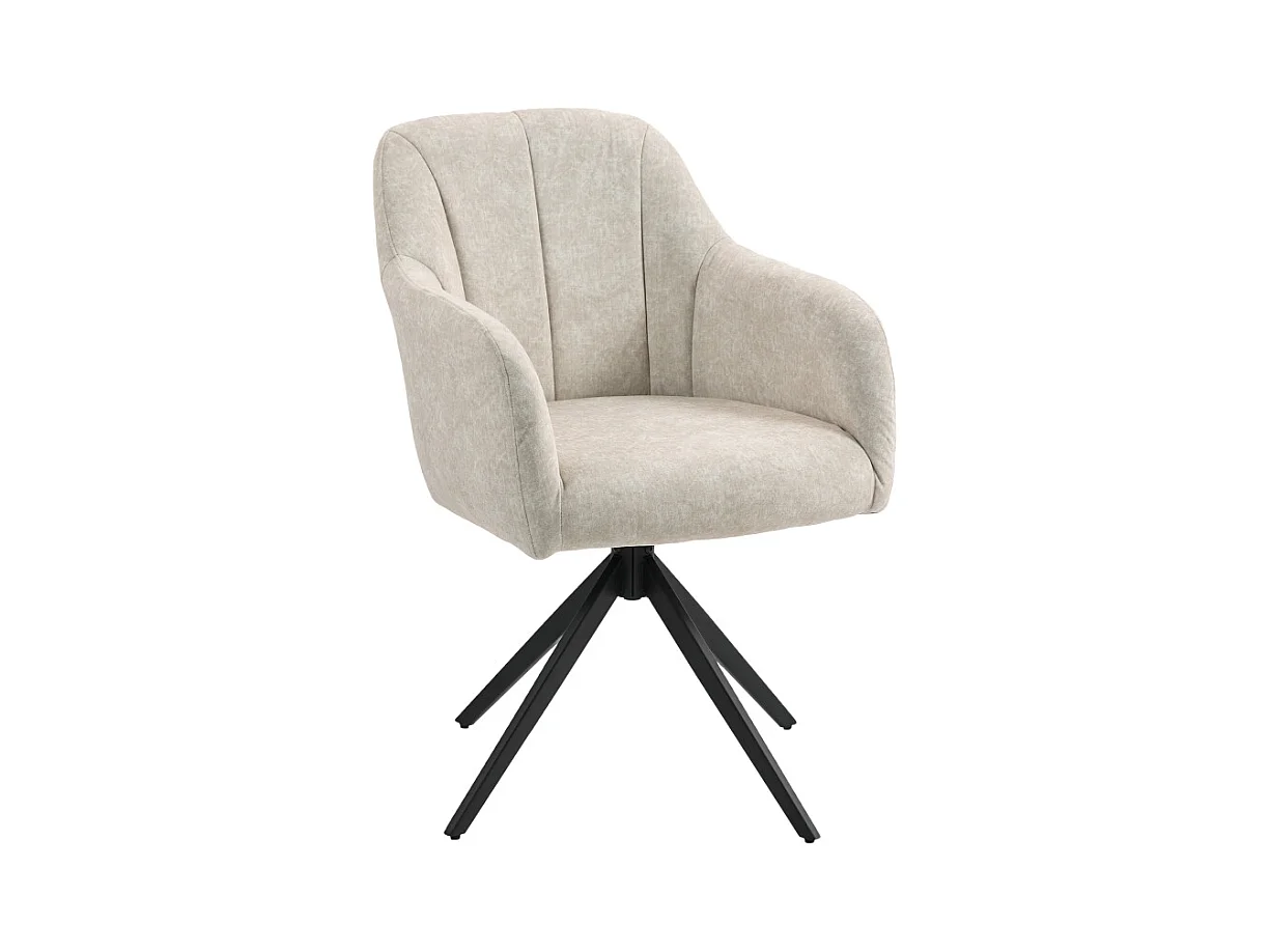 Fauteuil pivotant avec dossier capitonné, revêtement en velours, pieds en métal, beige (63x56x86 cm)
