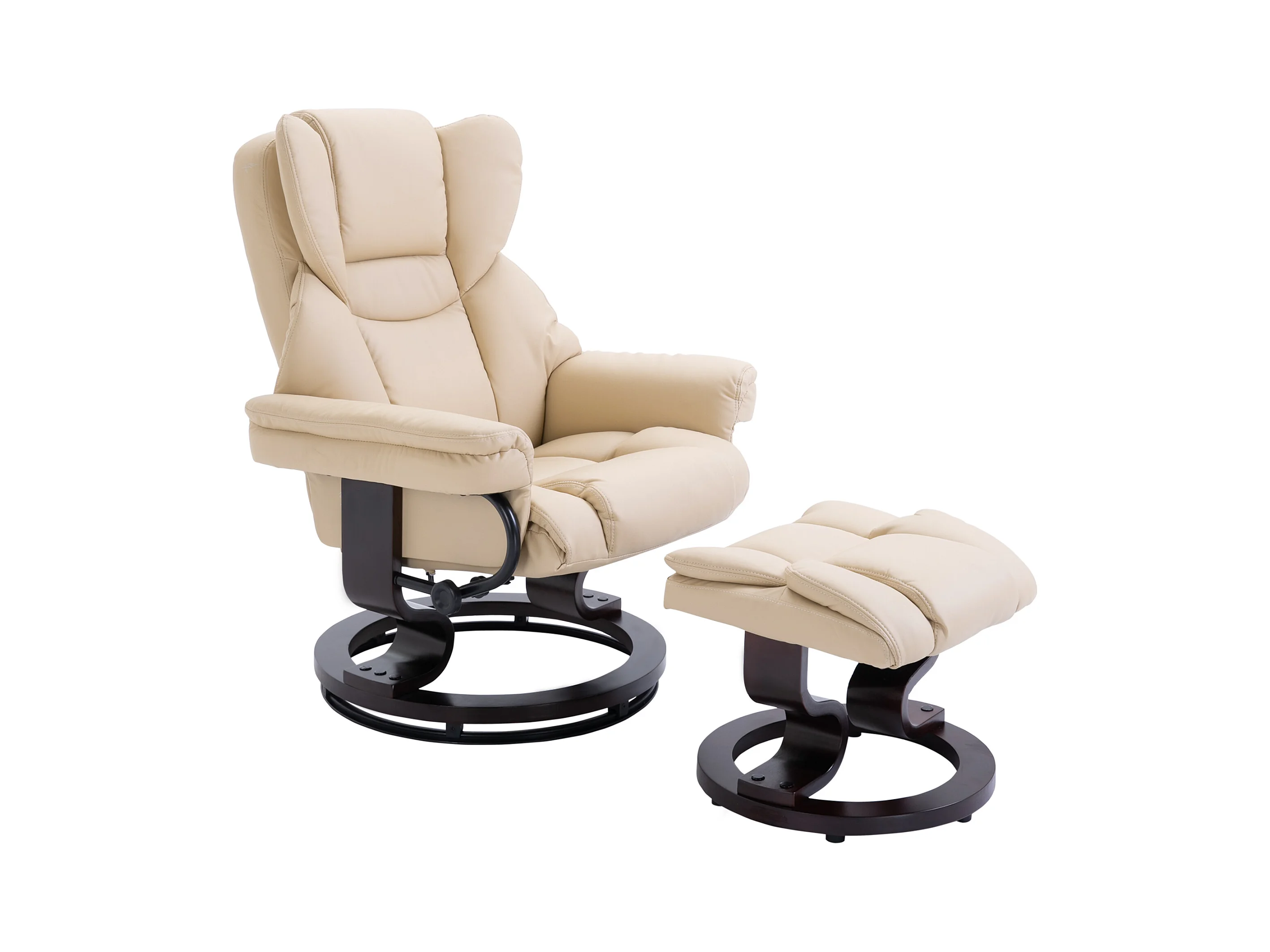 Fauteuil pivotant avec pouf, fonction inclinable, cuir synthétique, crème (80x79x100 cm)
