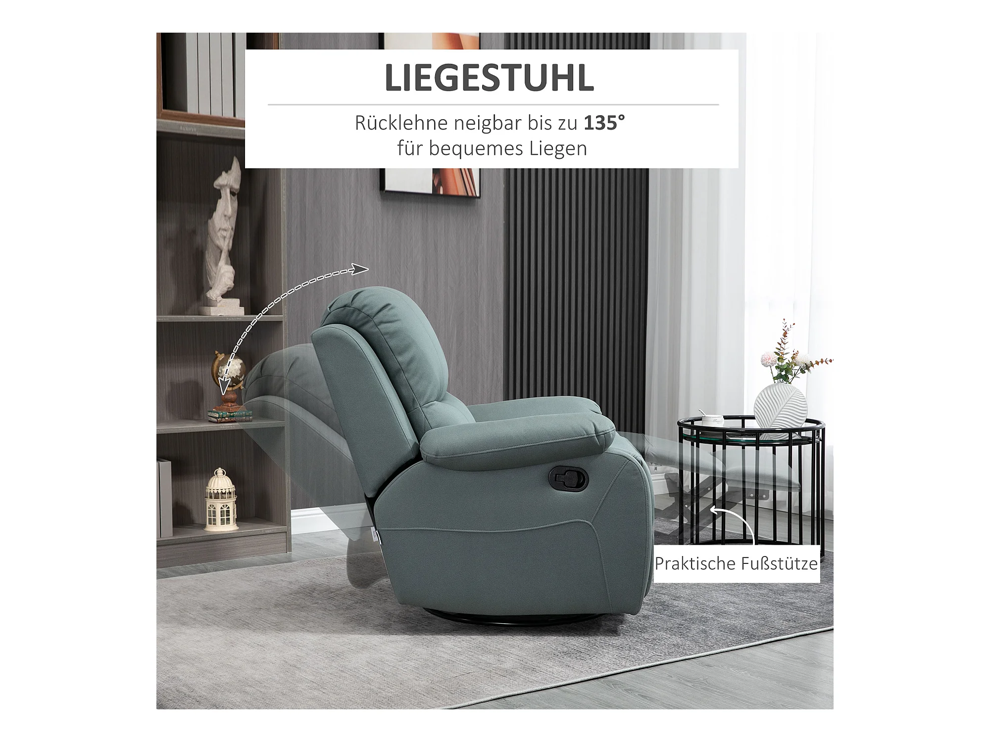 Fauteuil pivotant avec repose-pieds, 135° inclinable, jusqu'à 150 kg, polyester, vert (93x100x98 cm)