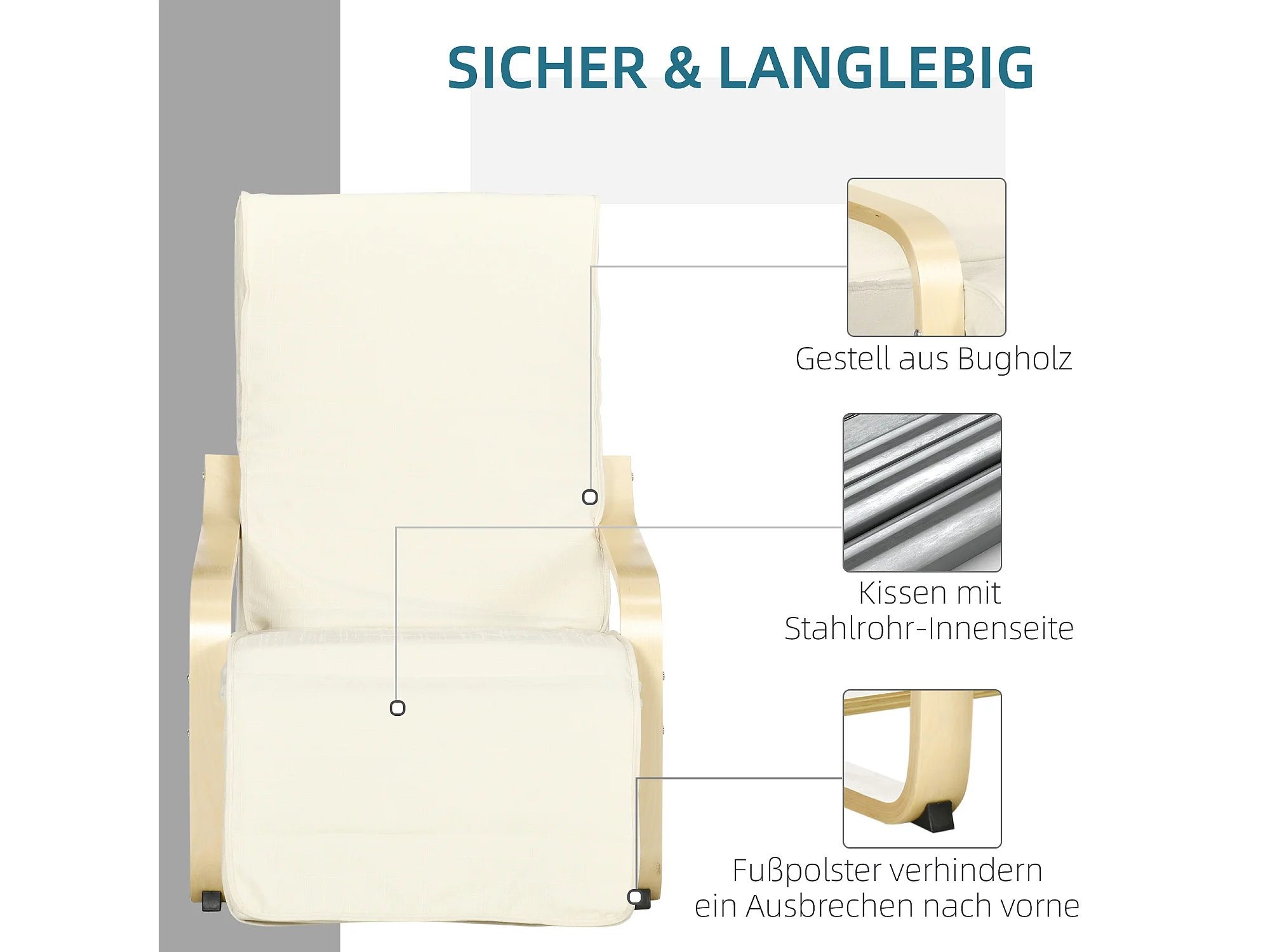 fauteuil pivotant avec repose-pieds ajustable, chaise de salle à manger en lin, bois de bouleau, crème (66.5x94x100 cm)