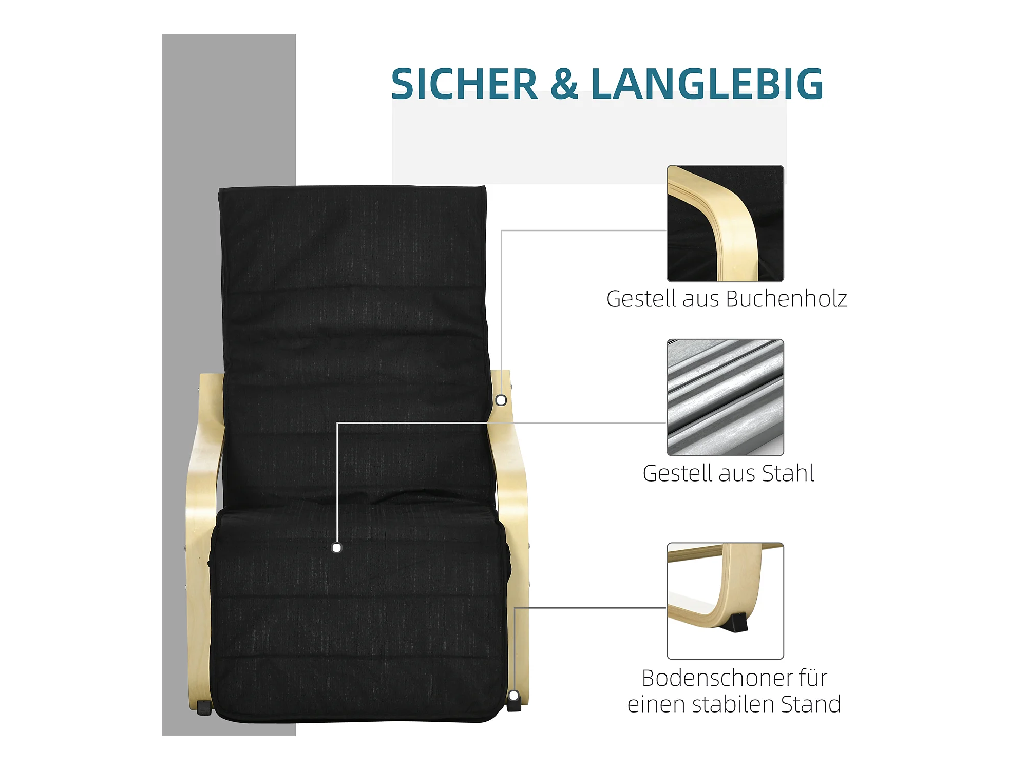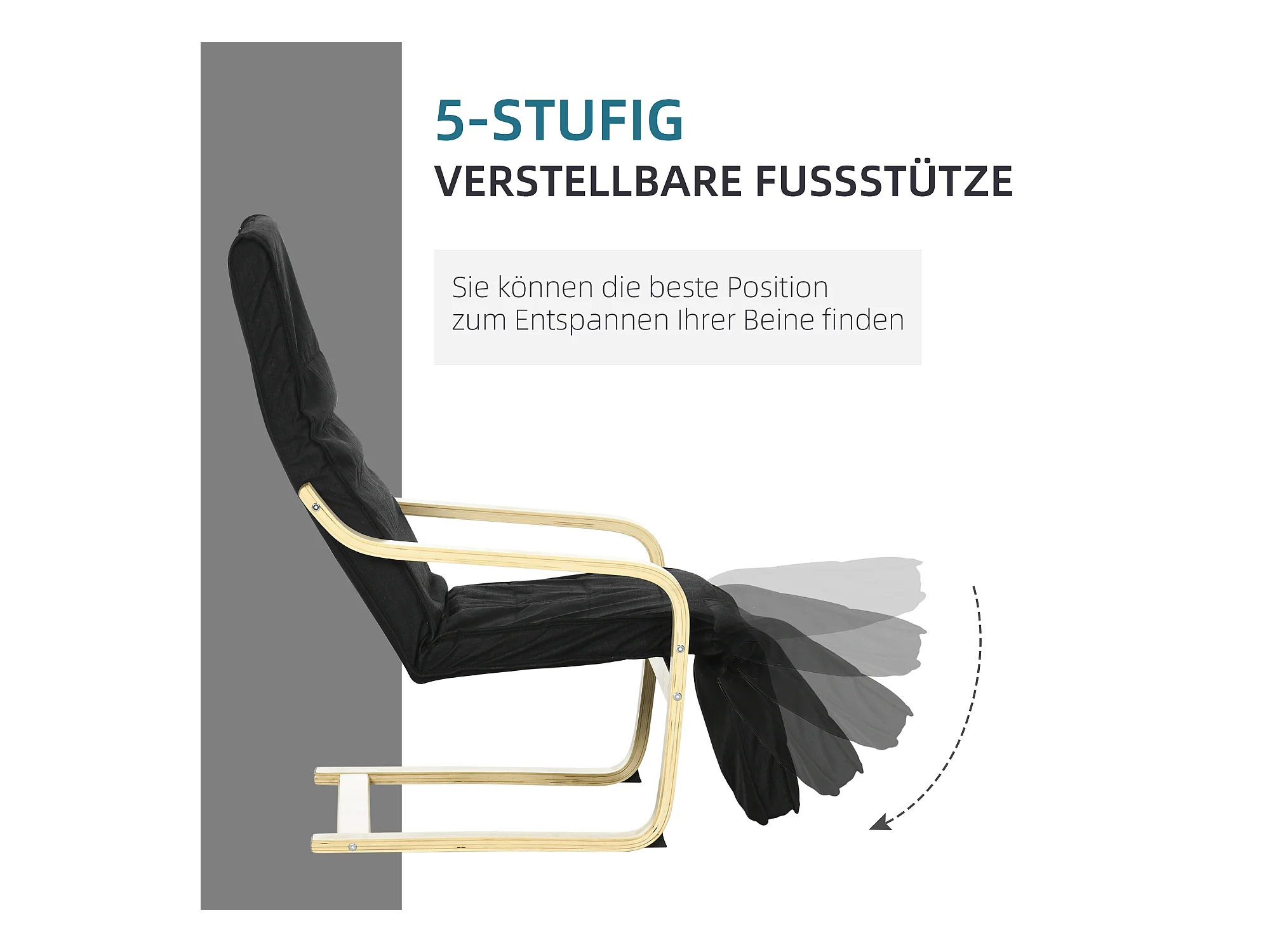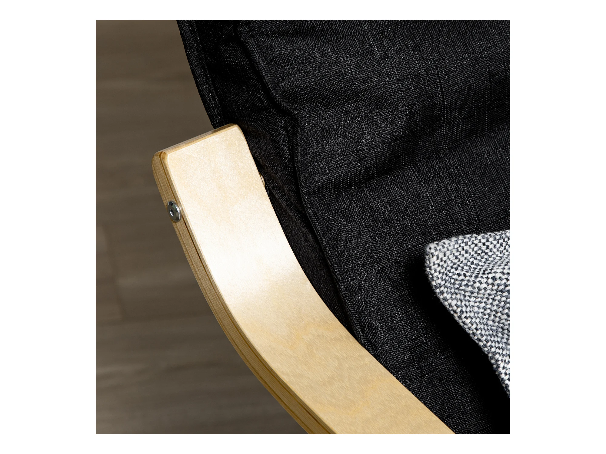 Fauteuil style nordique - repose-pied réglable - déhoussable - bois de bouleau tissu noir