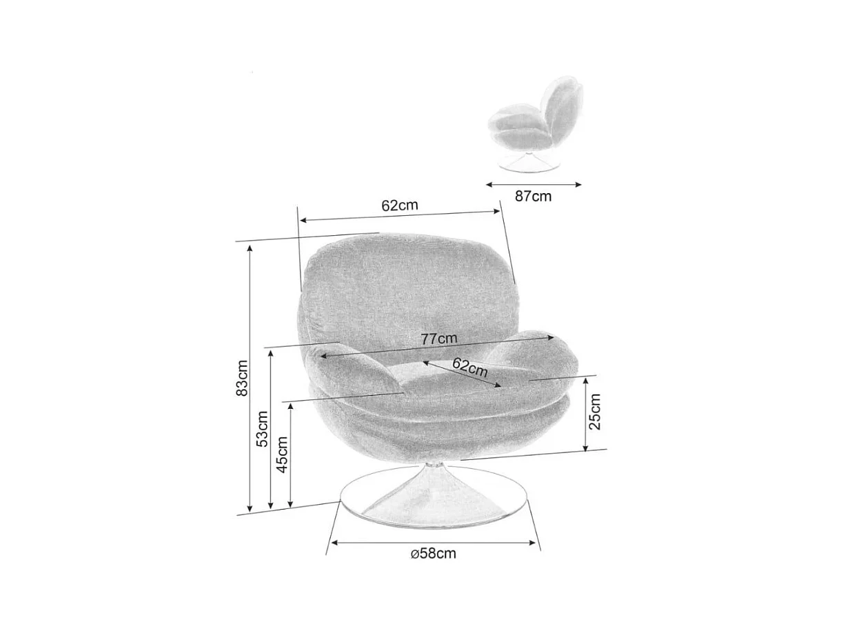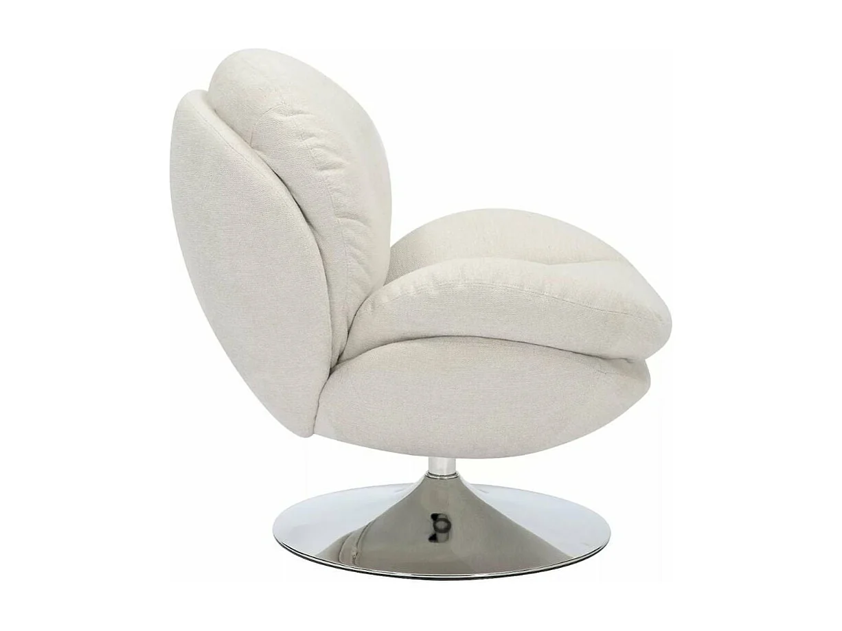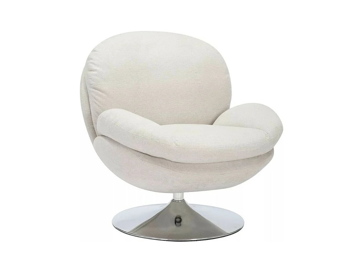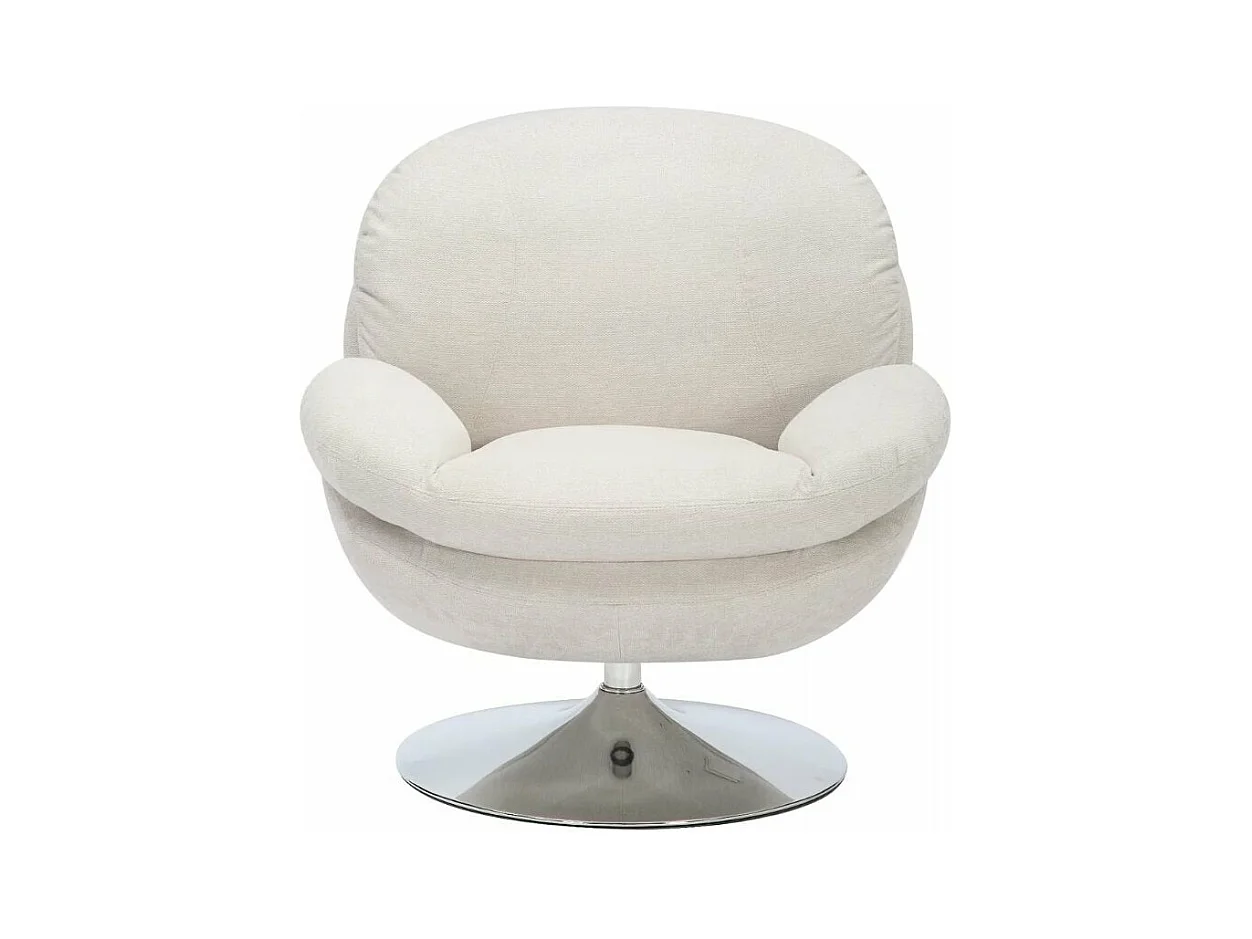 Fauteuil pivotant crème en tissu avec pied rond chromé Noche