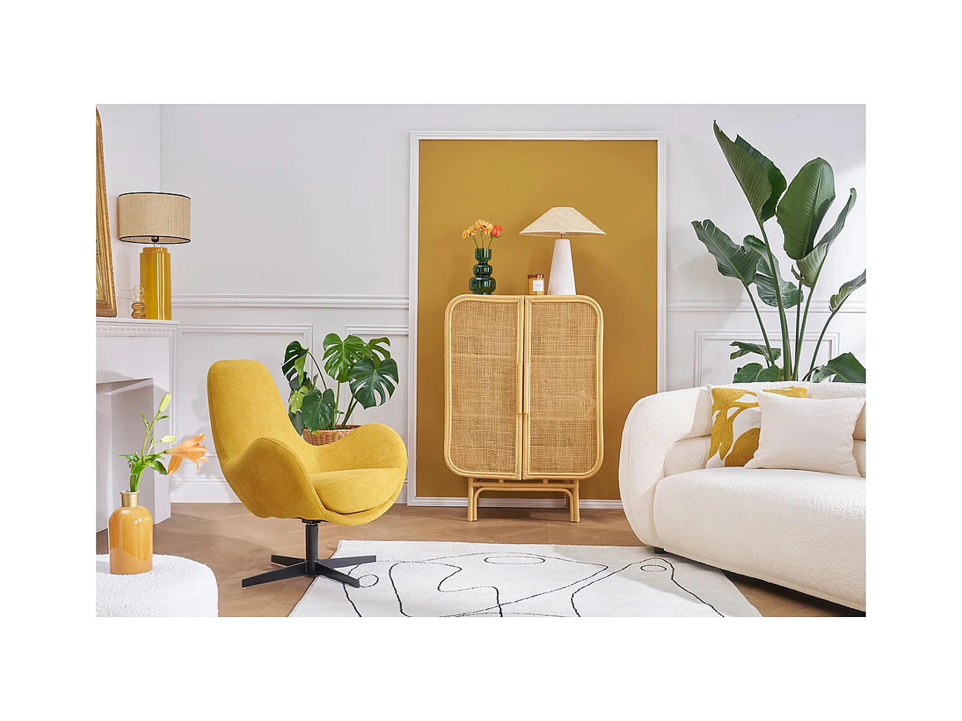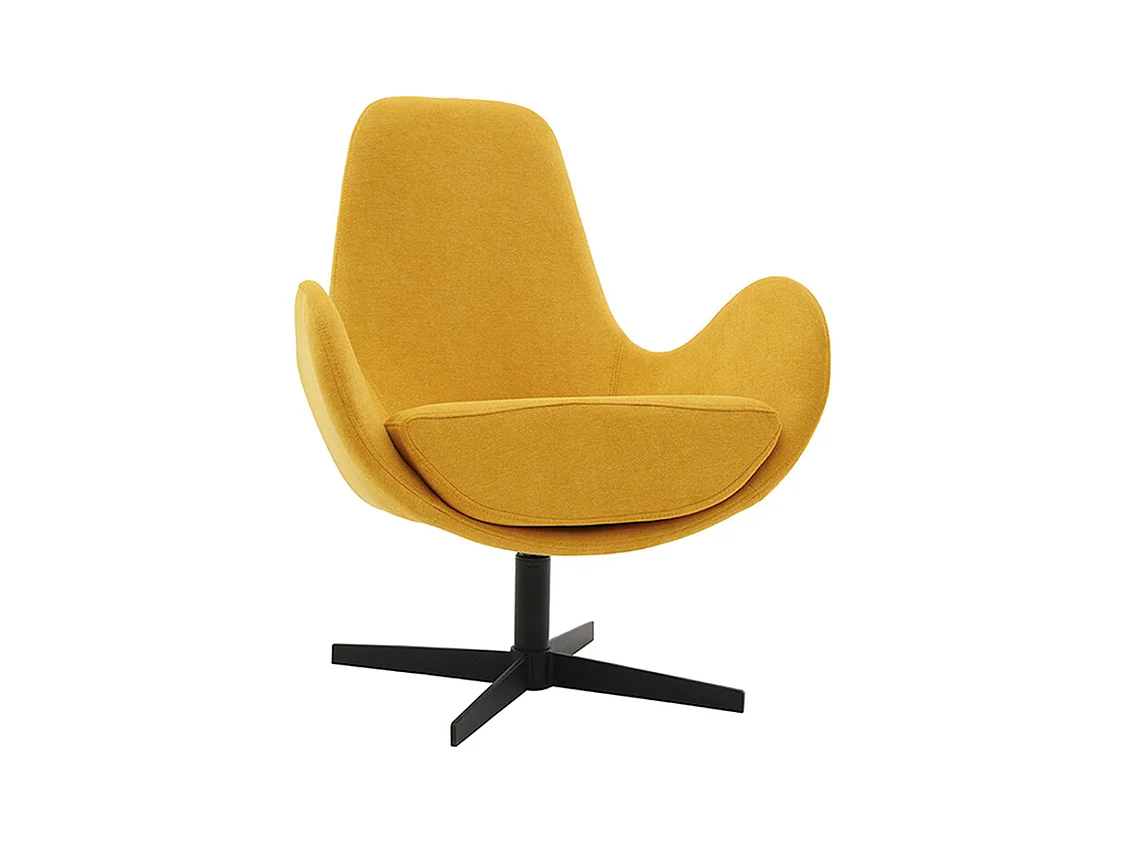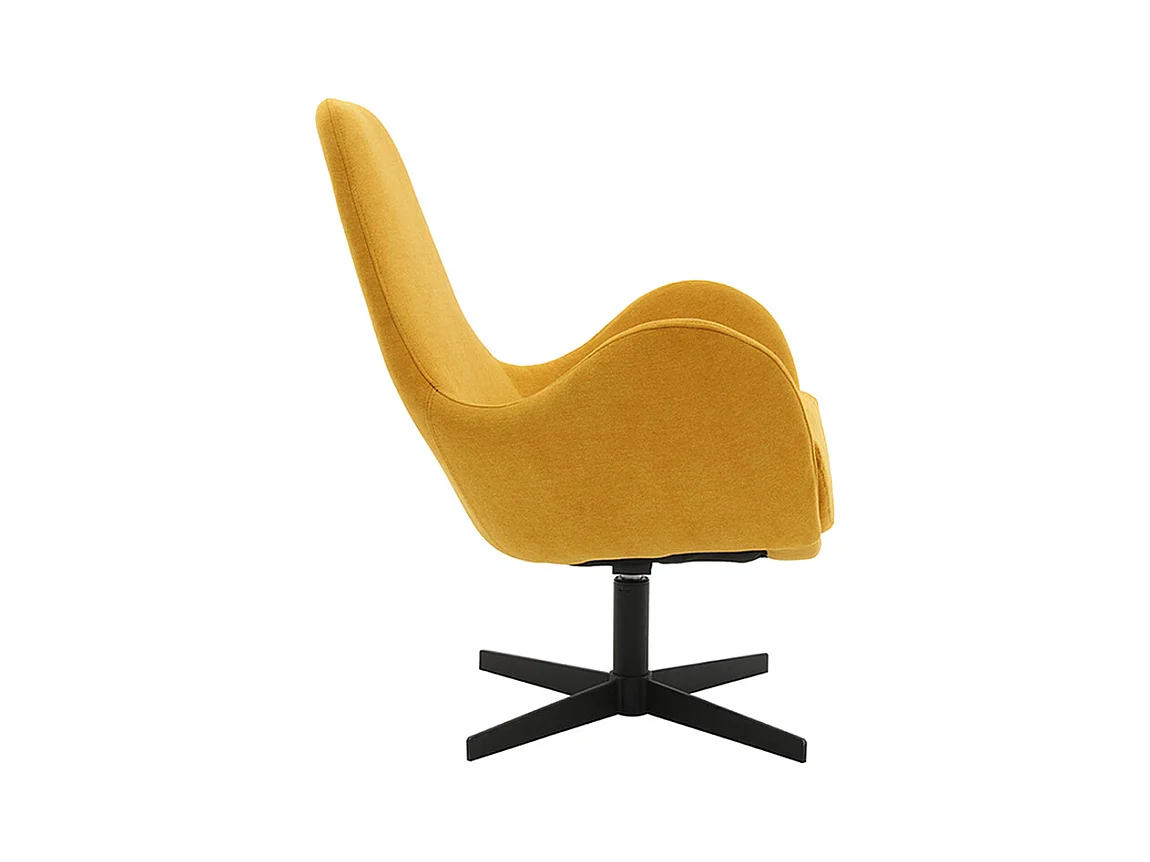Fauteuil pivotant design en tissu effet velours jaune moutarde et métal noir ANDY
