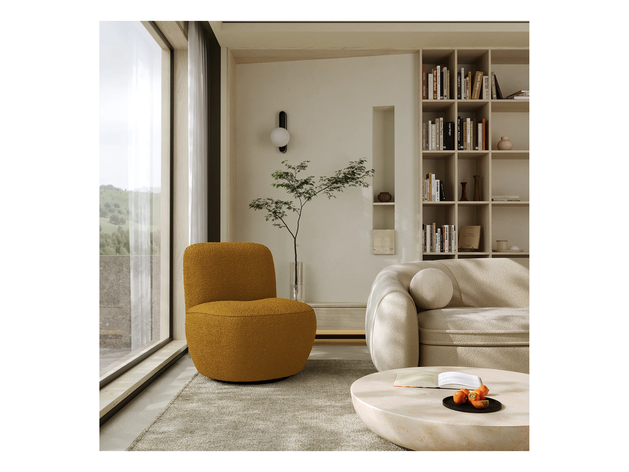 Fauteuil de salon pivotant en bouclette moutarde JENA