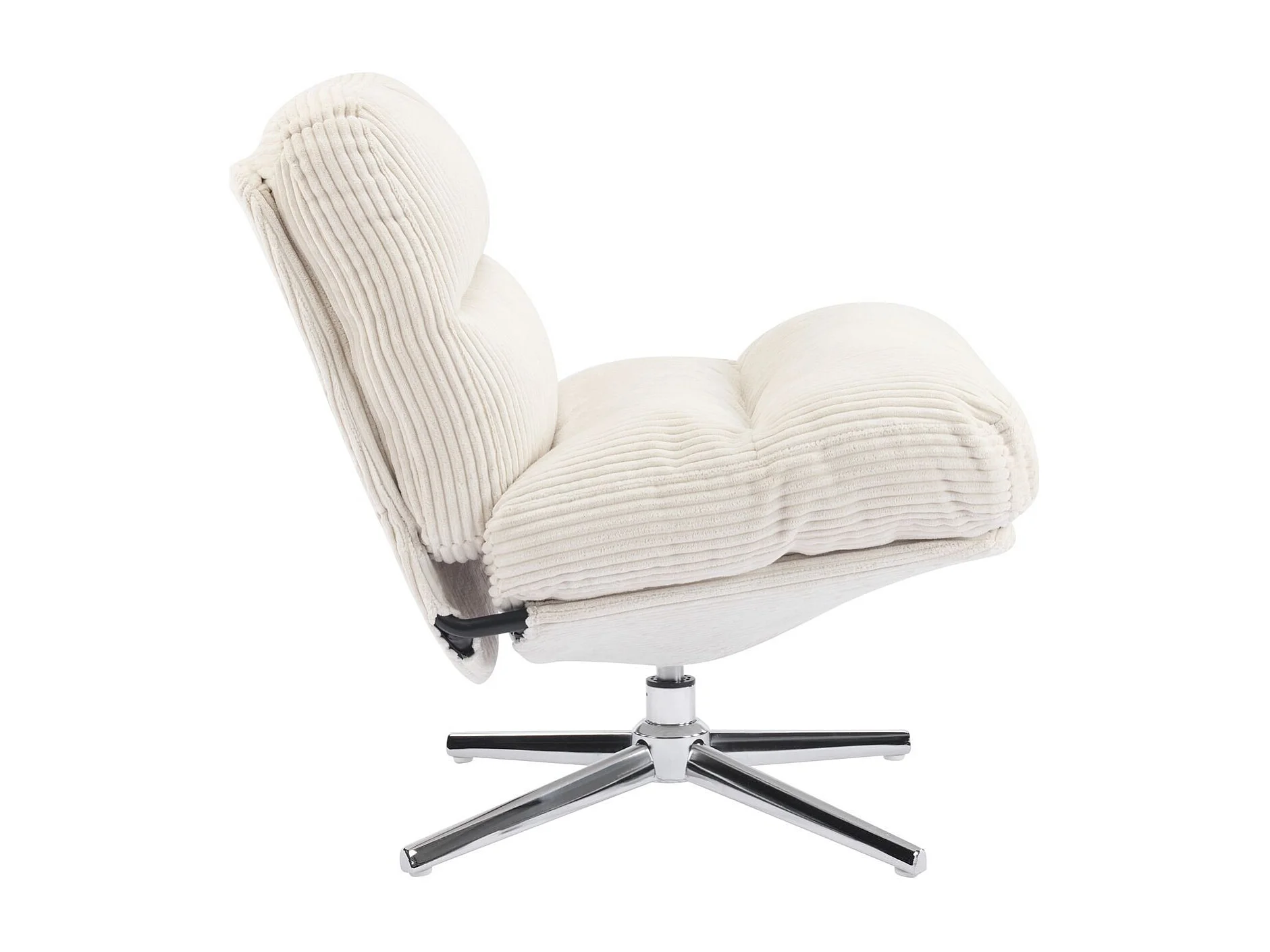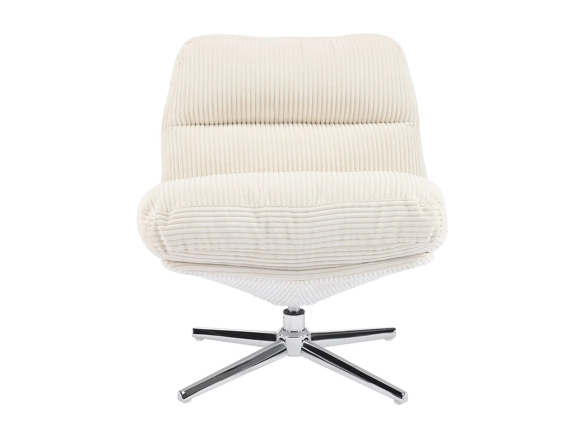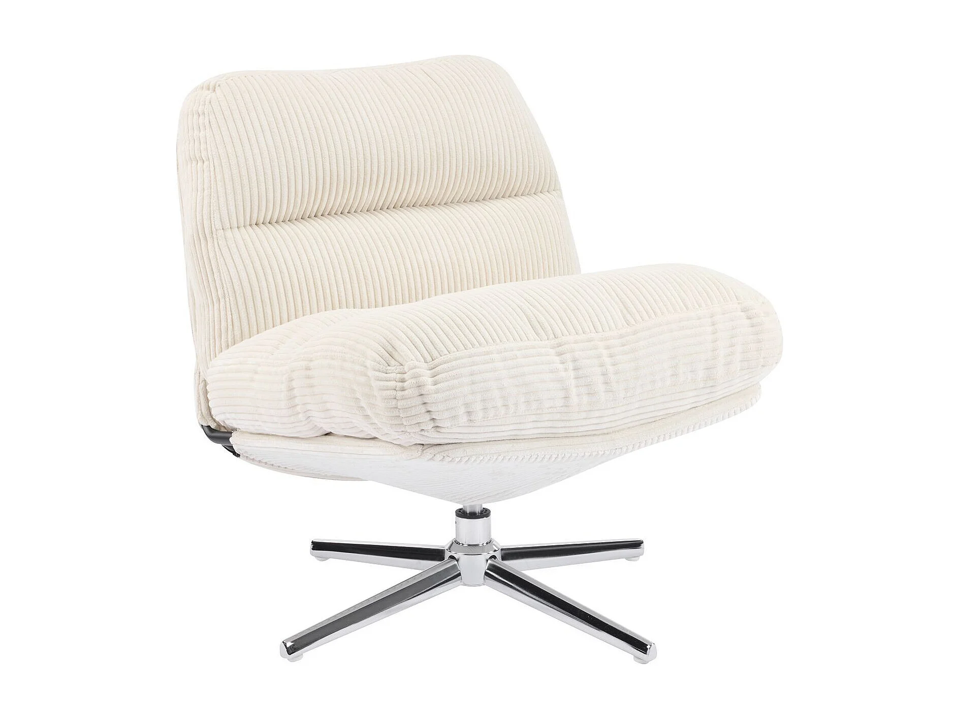 Fauteuil pivotant en velours cotelé beige et piètement chromé - Julia