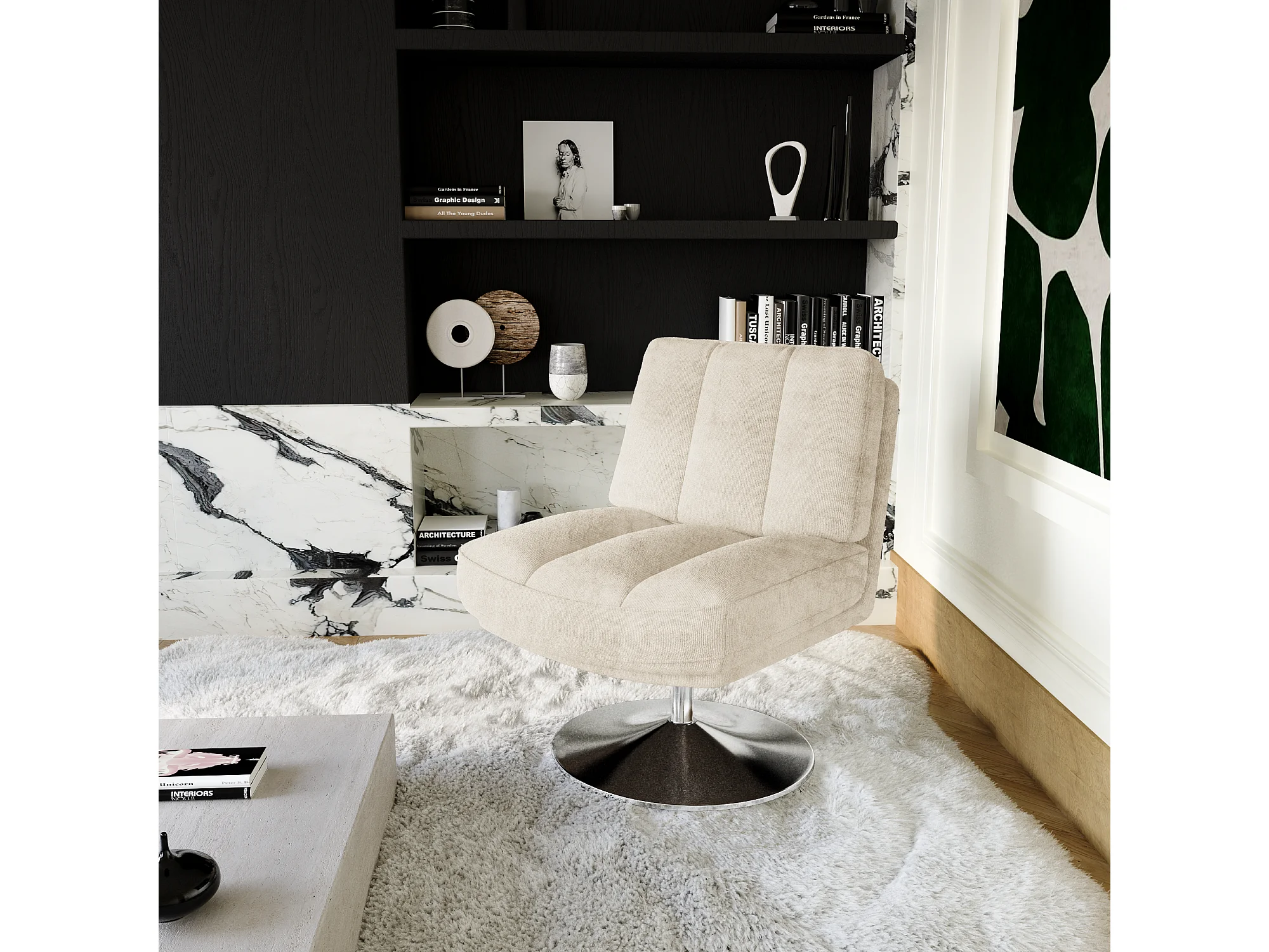 Fauteuil de salon pivotant pied chrome velours texturé écru TIMELESS