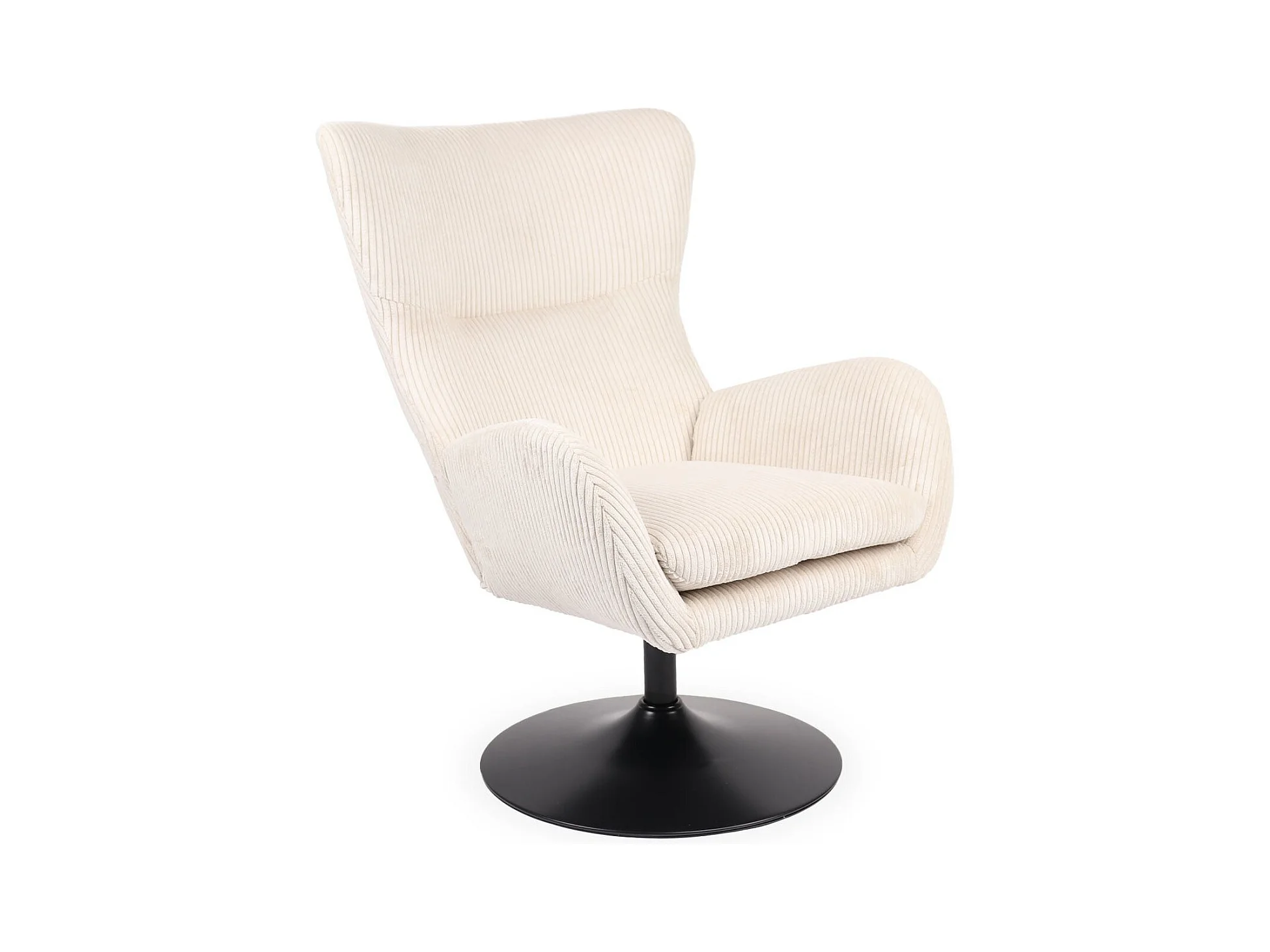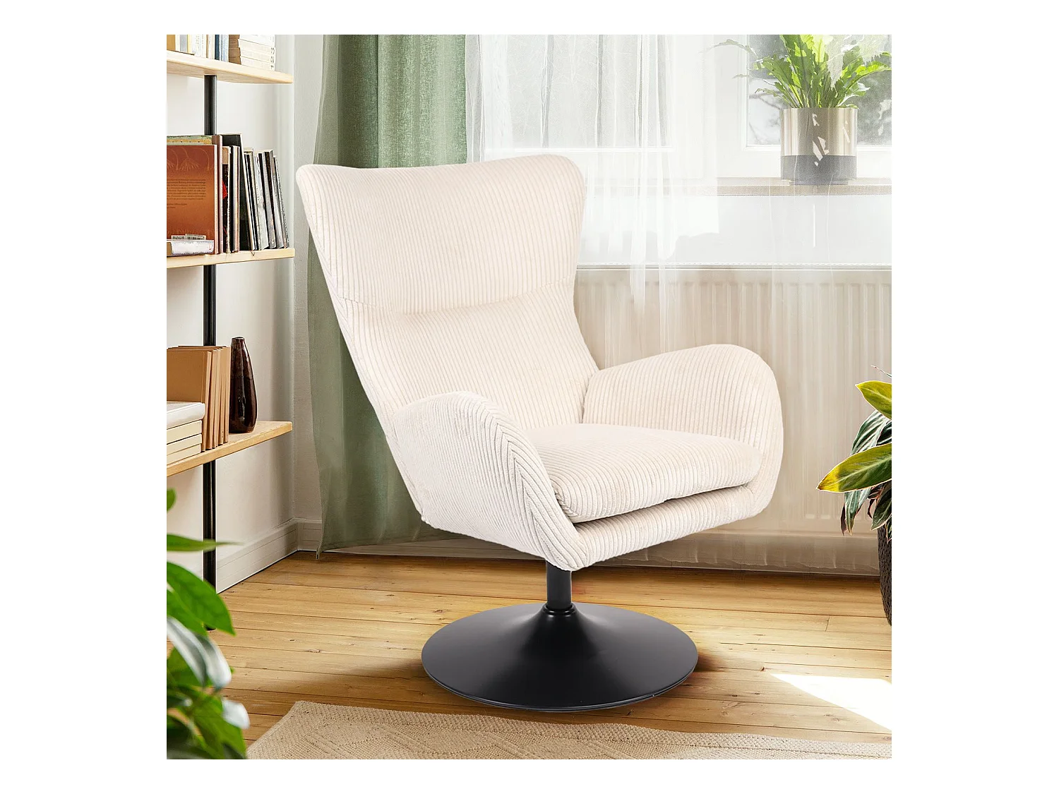 Fauteuil pivotant style bergère Arthuro Velours côtelé Beige