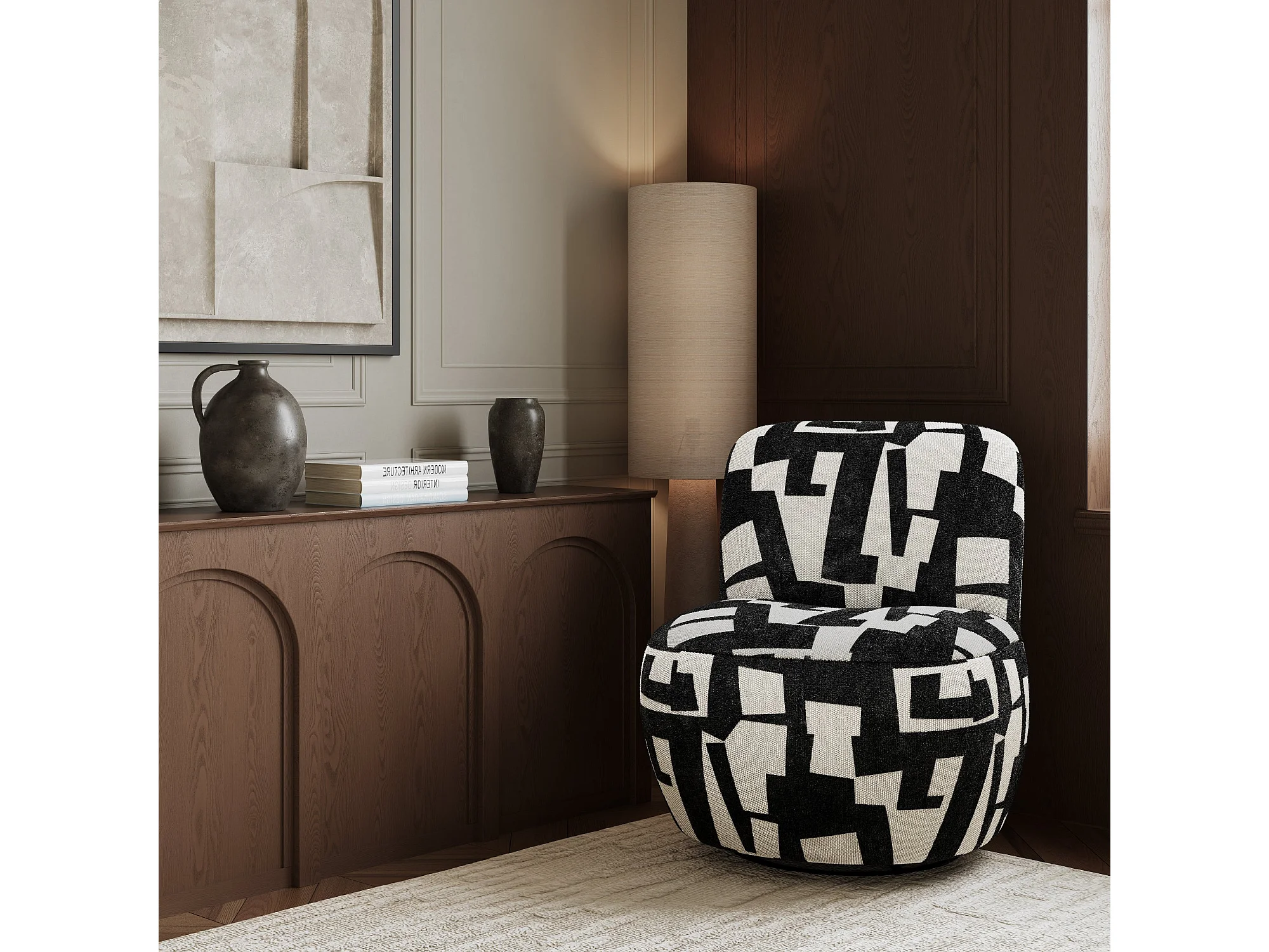Fauteuil de salon pivotant tissu texturé à motif anthracite foncé JENA