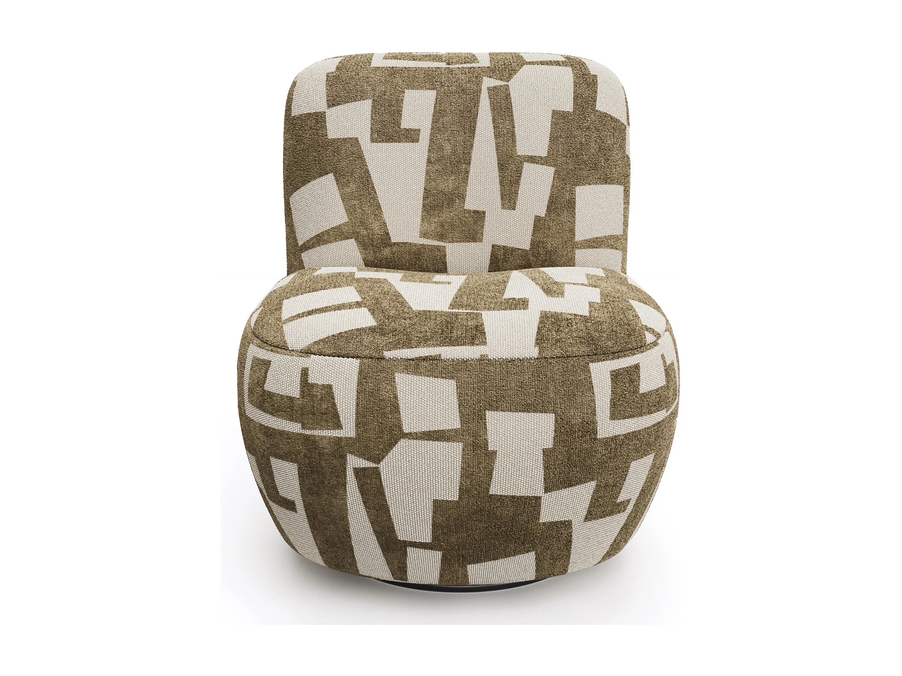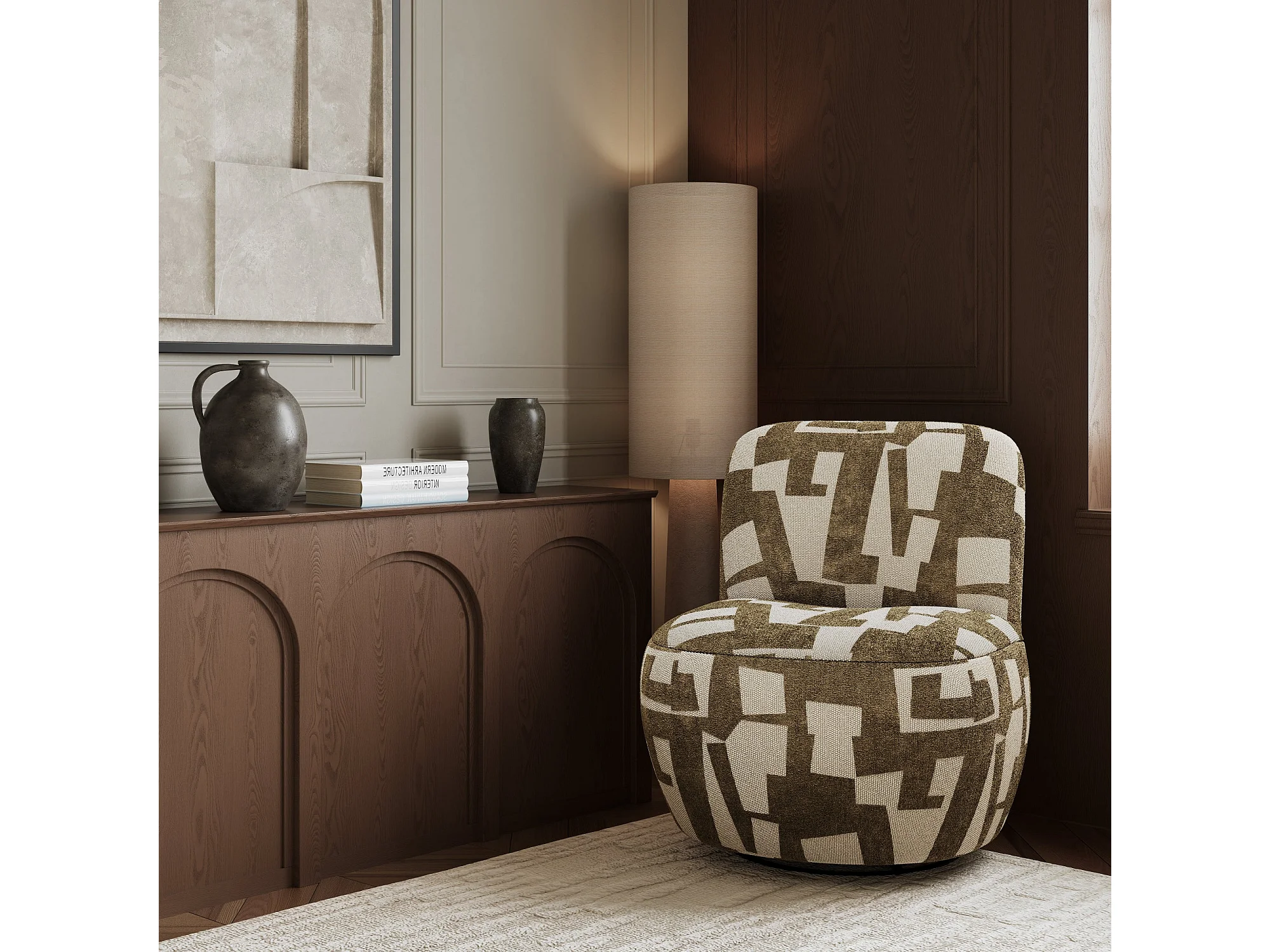 Fauteuil de salon pivotant tissu texturé à motif kaki JENA