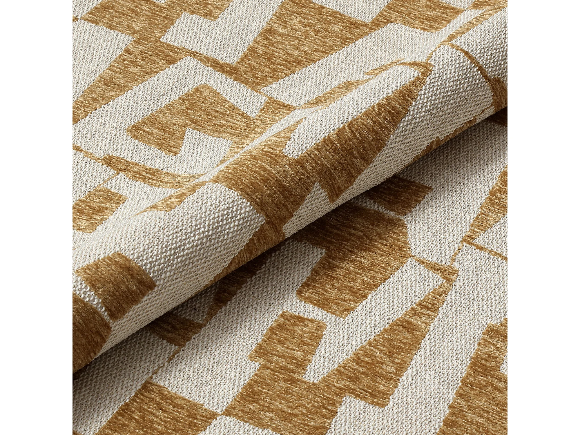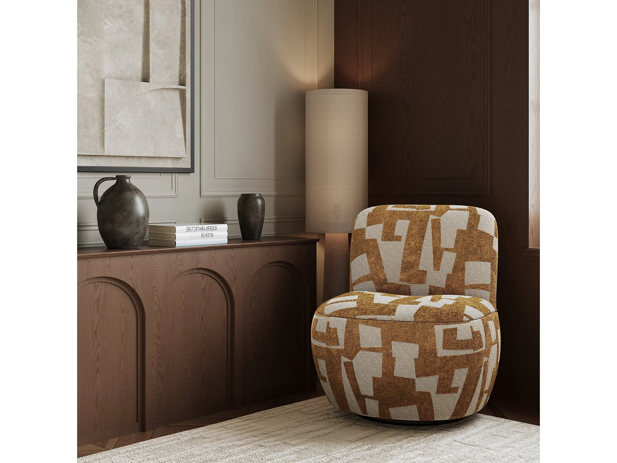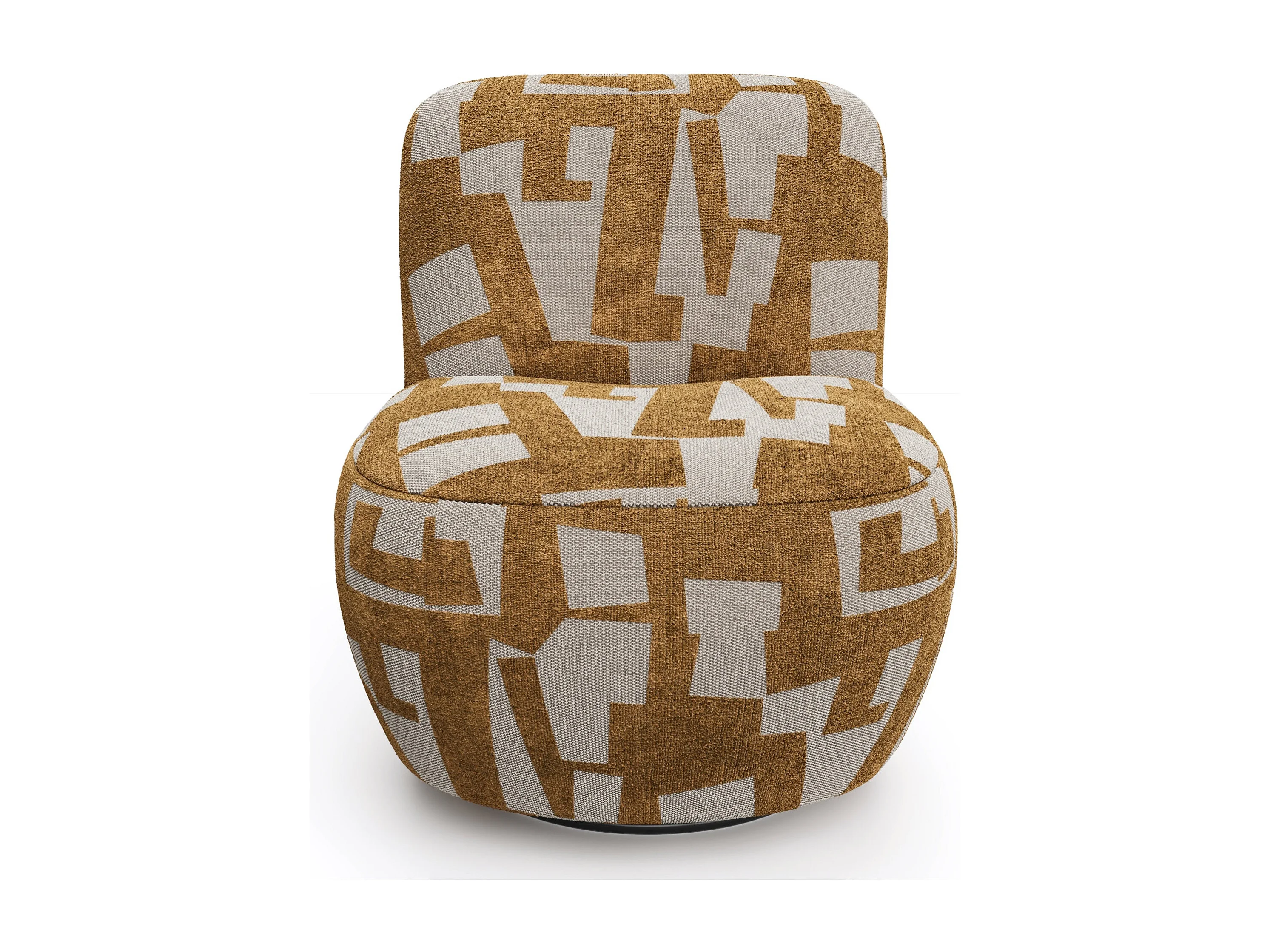 Fauteuil de salon pivotant tissu texturé à motif moutarde JENA