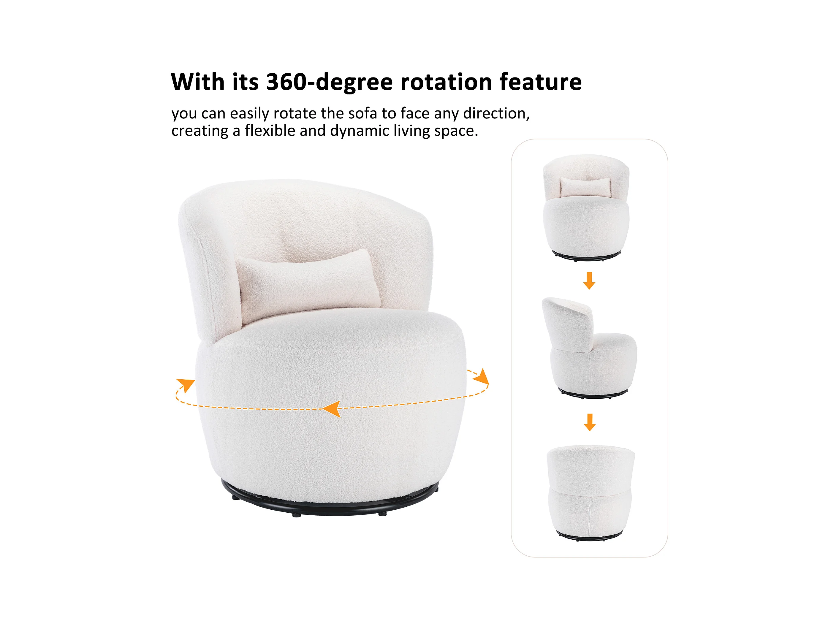 Fauteuil pivotant - Fauteuil de salon avec coussin lombaire - Peluche blanche - pour salon et chambre