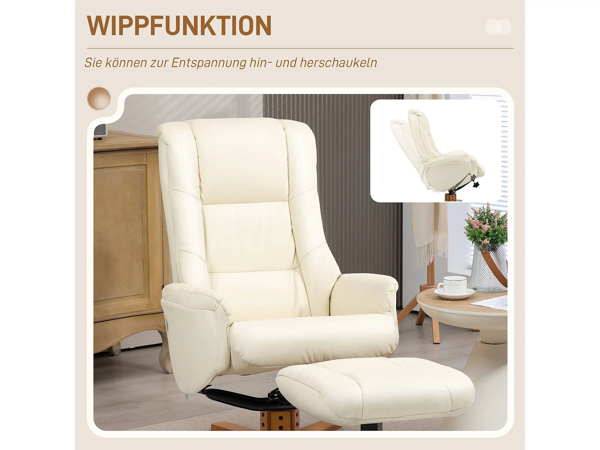 Fauteuil relax avec ottoman, fonction inclinable et bascule, en bois, blanc crème (71x84x102 cm)