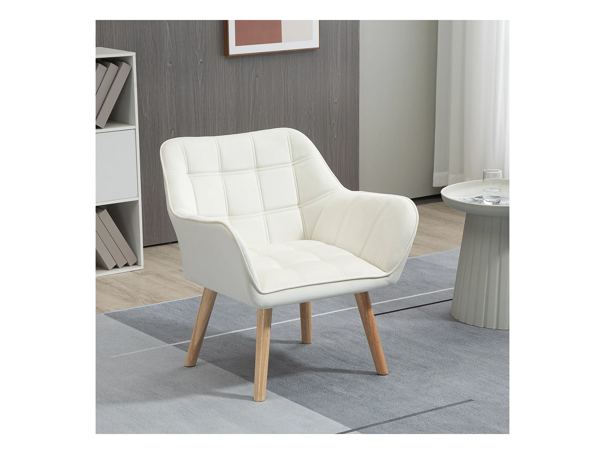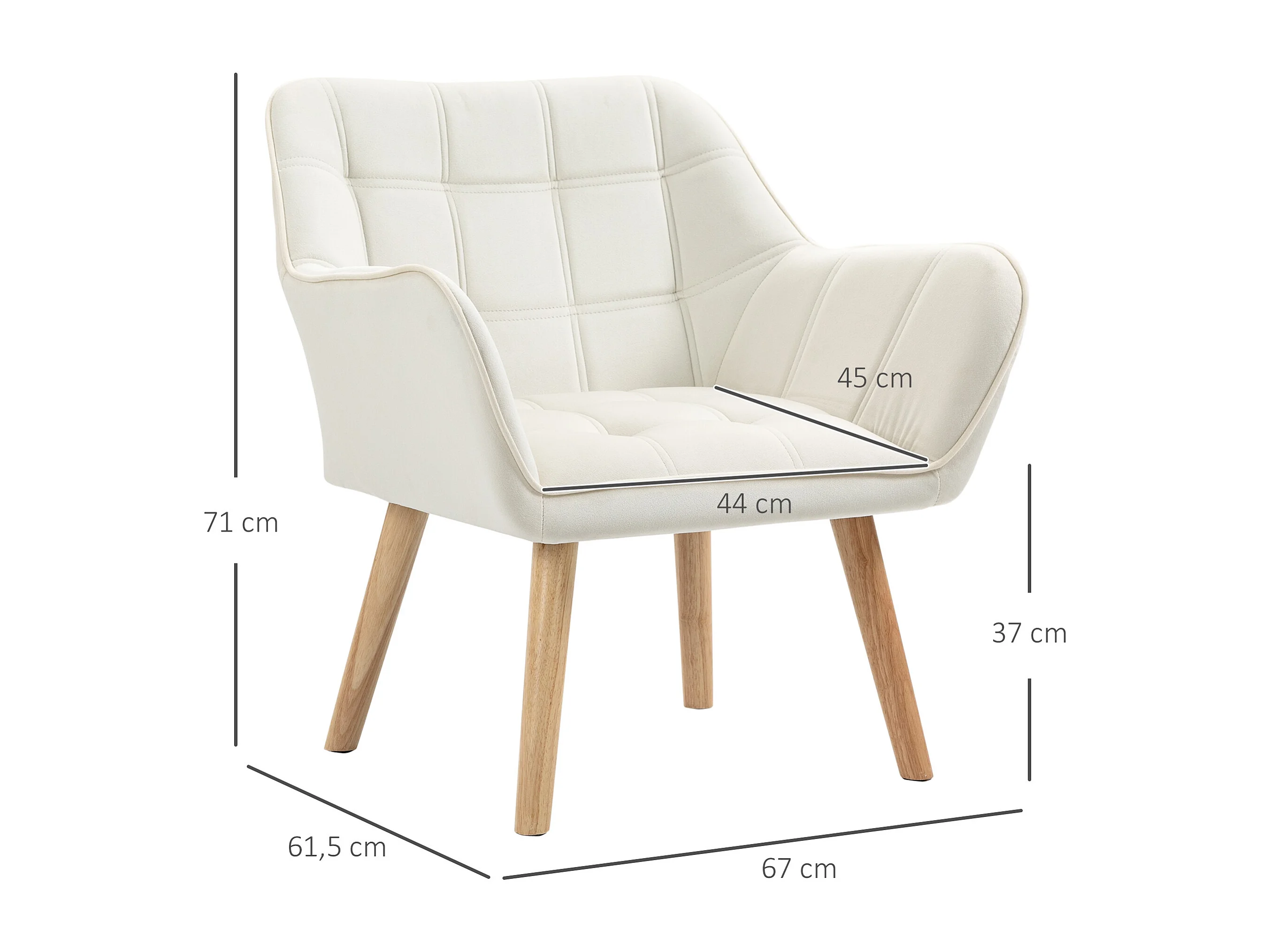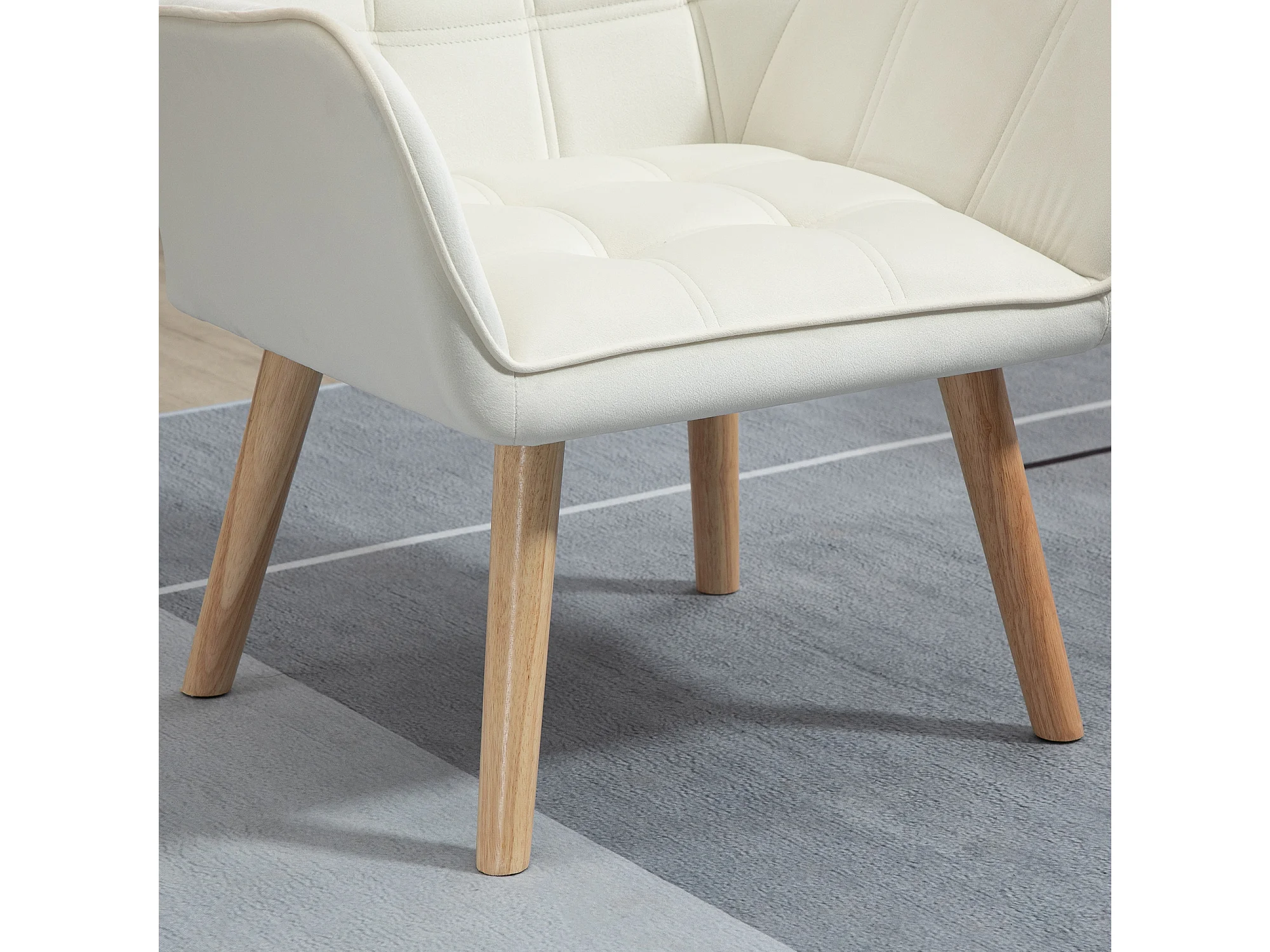 Fauteuil relax nordique avec accoudoirs, cadre en bois, tissu velours, crème (80x65x83 cm)
