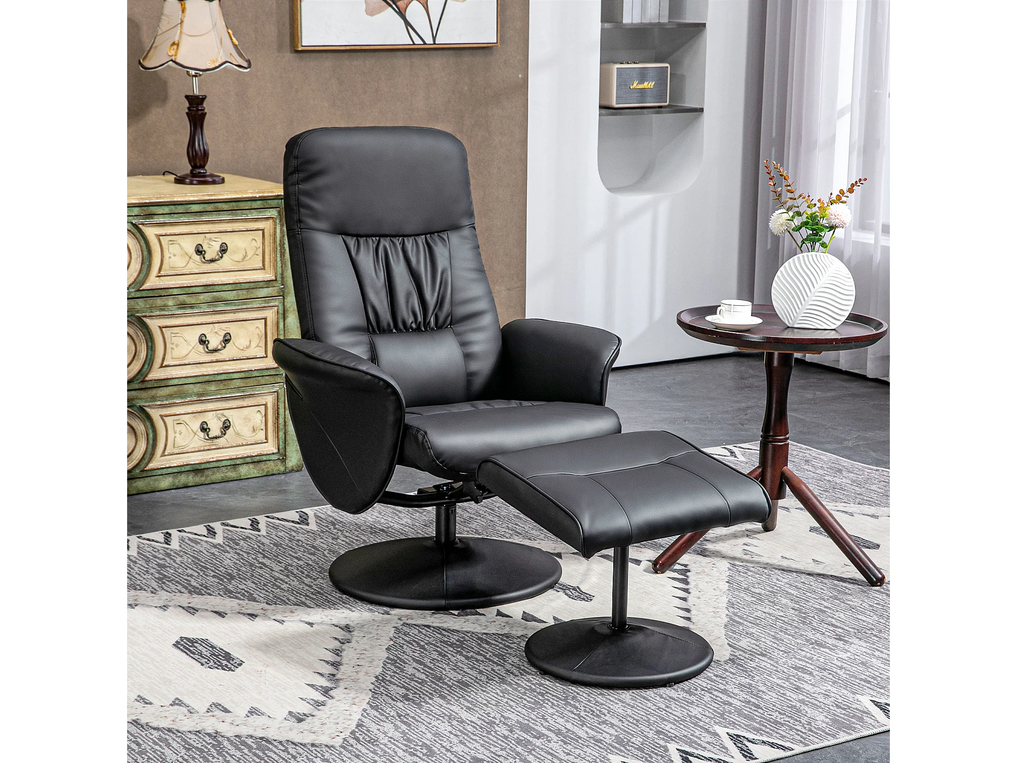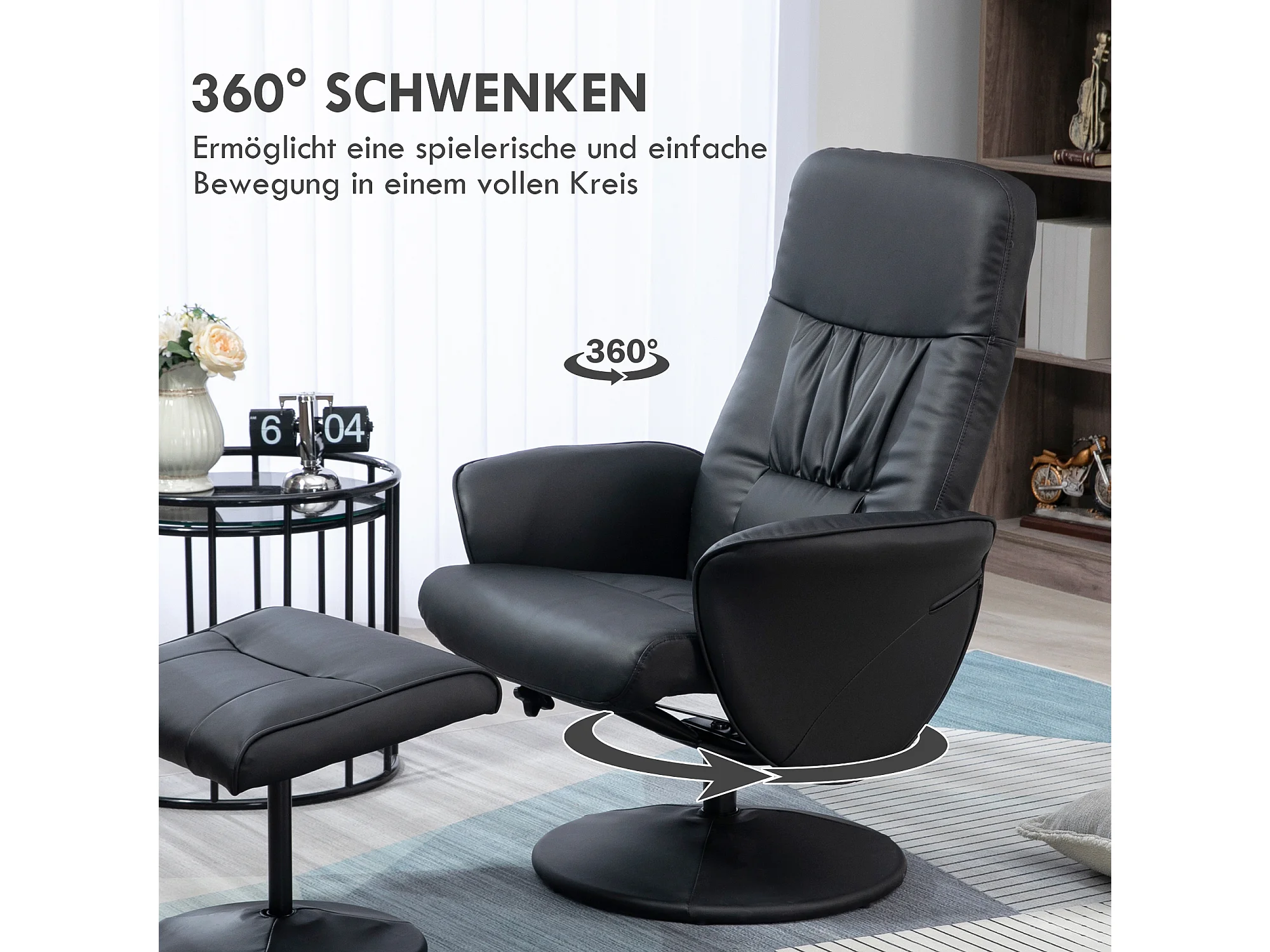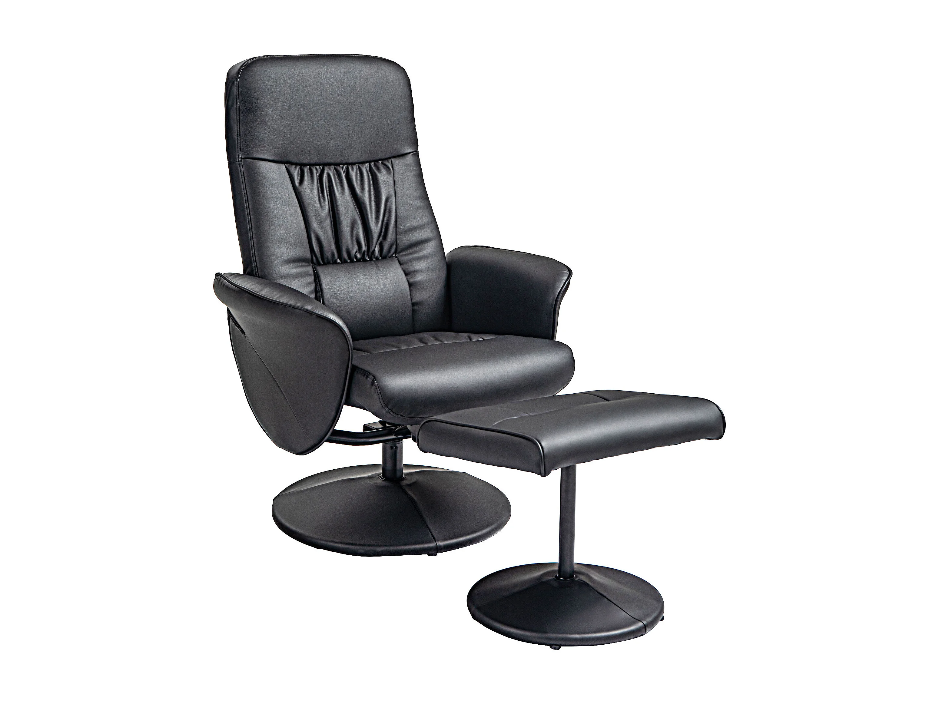 Fauteuil relax avec repose-pieds, fonction inclinable, en similicuir, noir (76x81x101 cm)