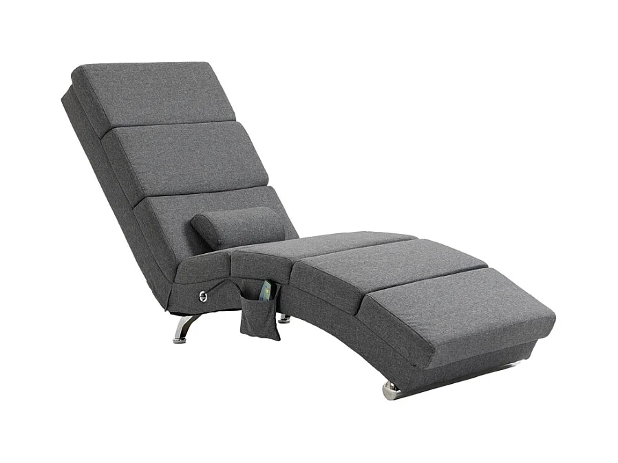 Fauteuil relax électrique avec fonction massage, dossier haut, polyester, gris foncé (56x168x84cm)