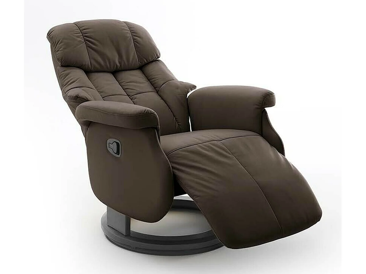 Fauteuil relax / fauteuil rotatif en cuir marron - L.77 x H.111 x P.86 cm