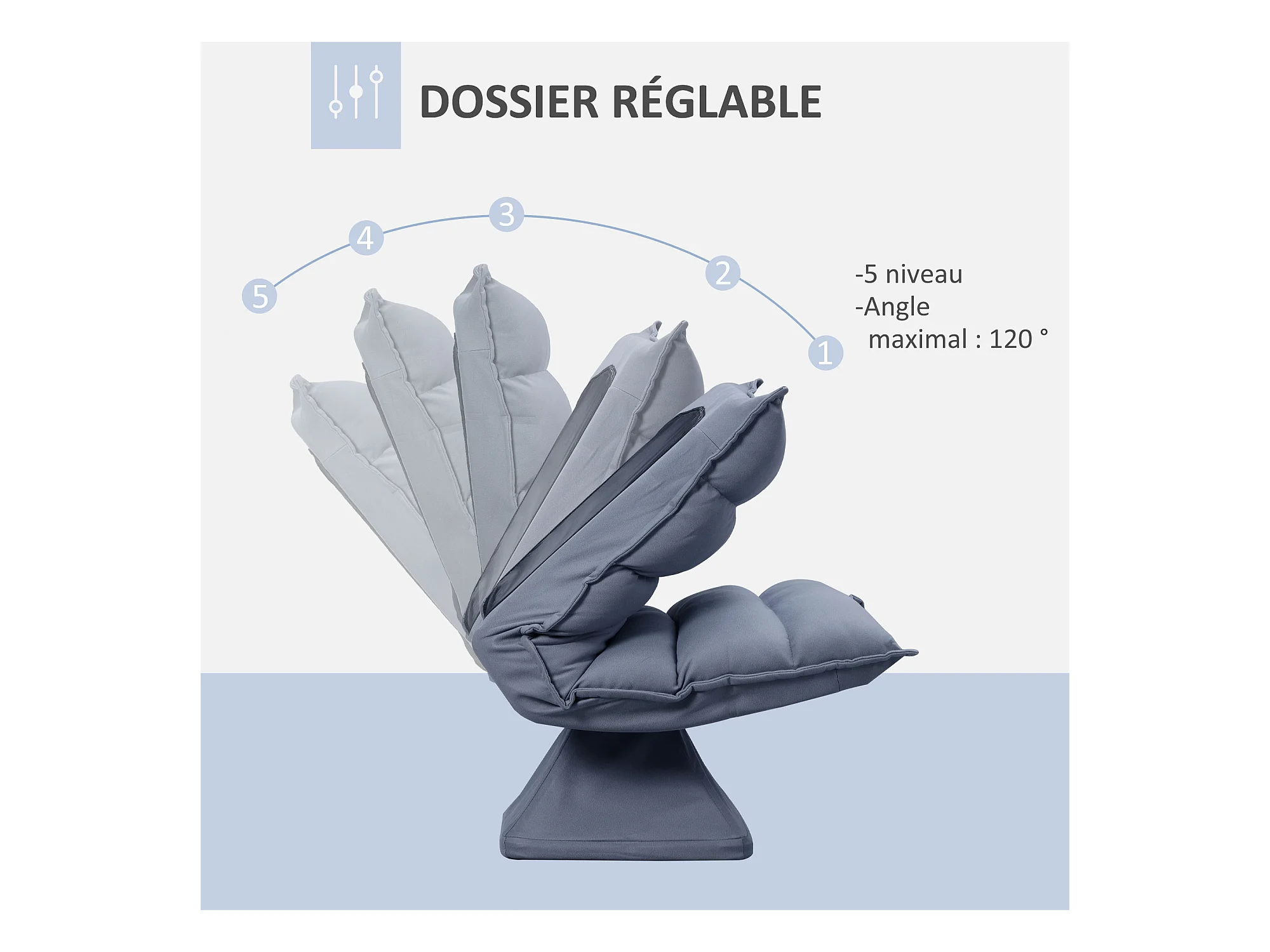Fauteuil convertible fauteuil paresseux grand confort inclinaison dossier multipositions 90°-180° flanelle polyester capitonné gris clair