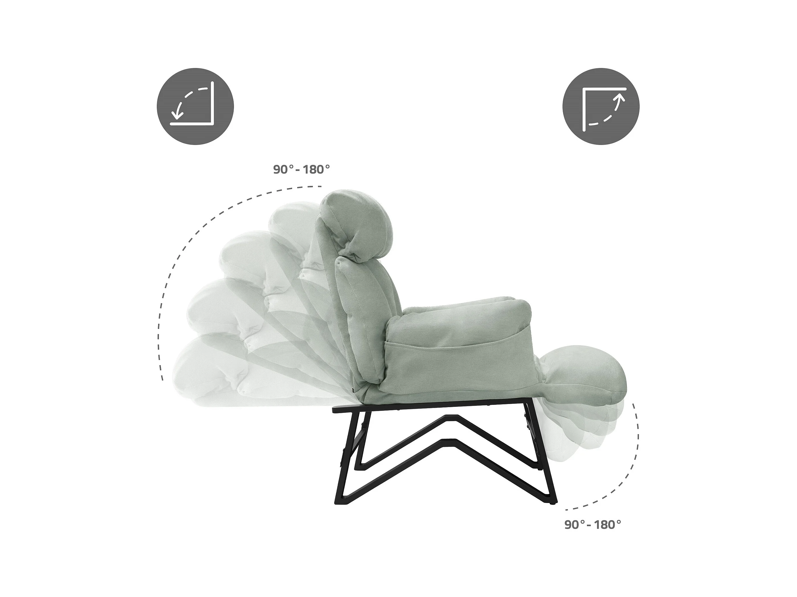 Fauteuil relax gris-vert en lin structure acier dossier et repose-pied réglables accoudoir rabattable siège inclinable rembourré chaise longue lecture