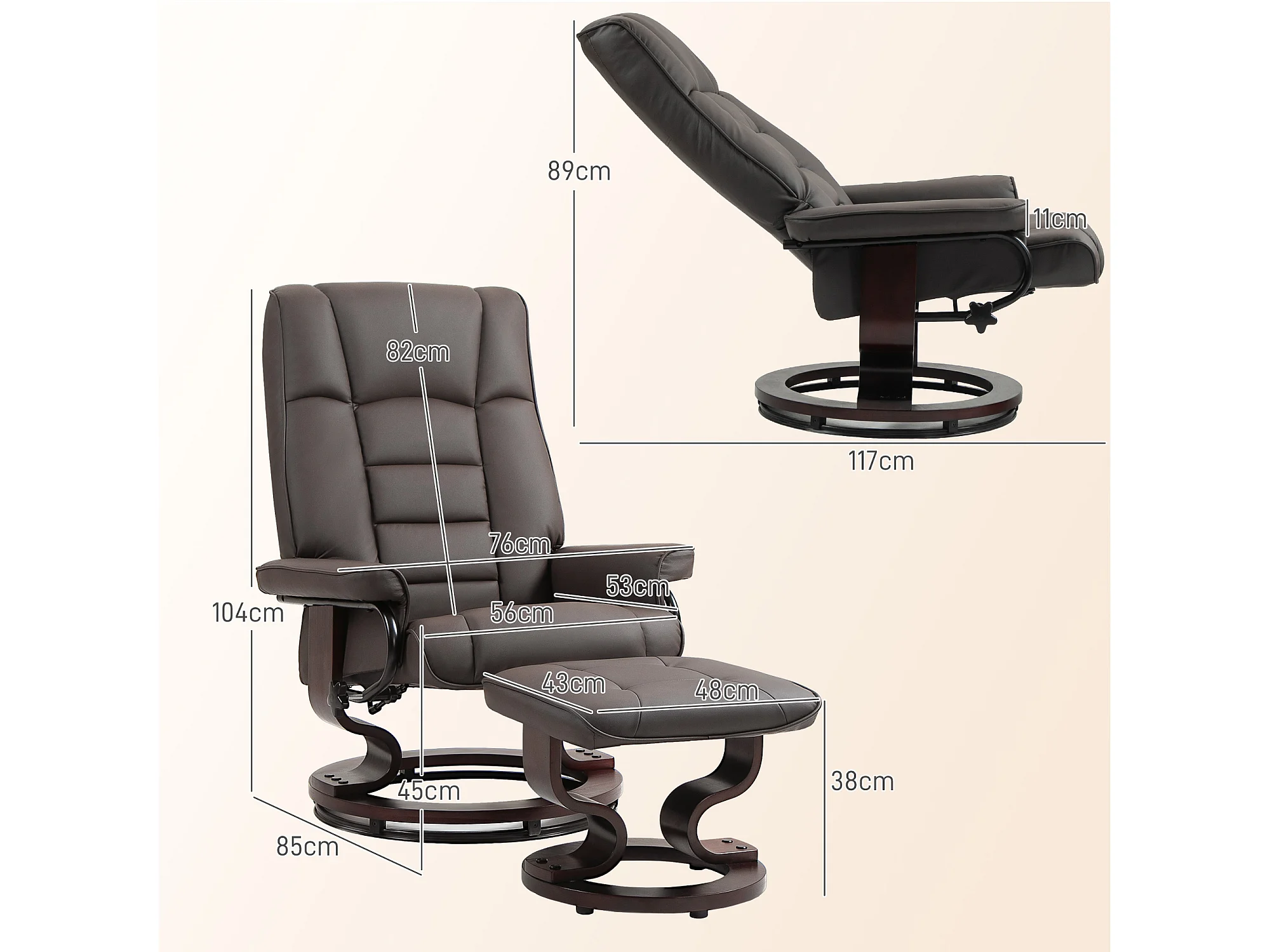 Fauteuil relax inclinable pivotant réglable avec repose-pied bois revêtement synthétique chocolat