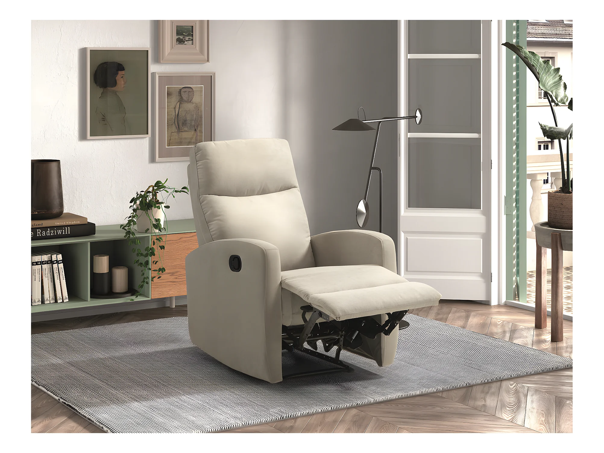 Fauteuil relax manuel en tissu waterproof couleur Crème - L. 66 x P. 88 x H. 103 cm