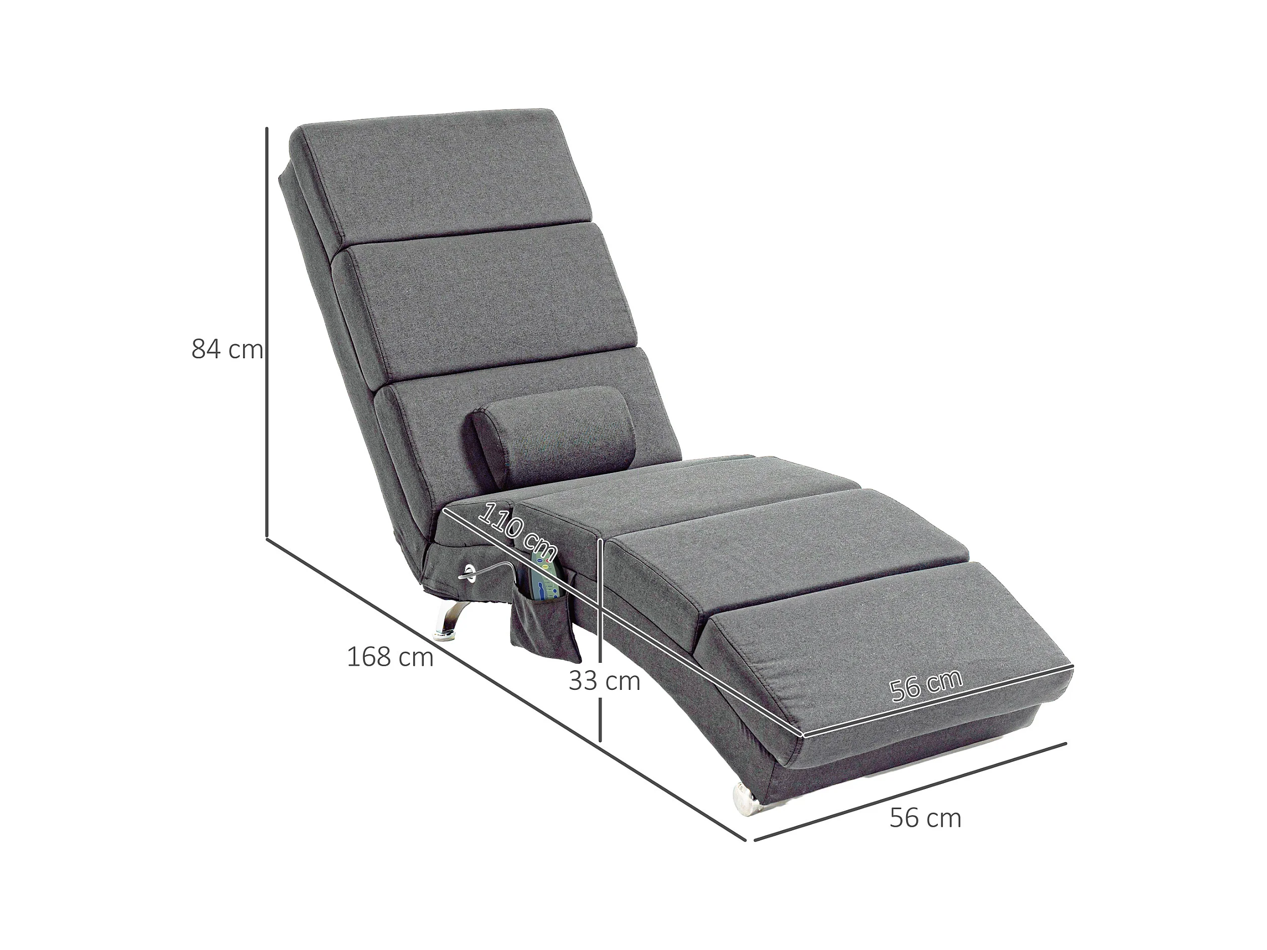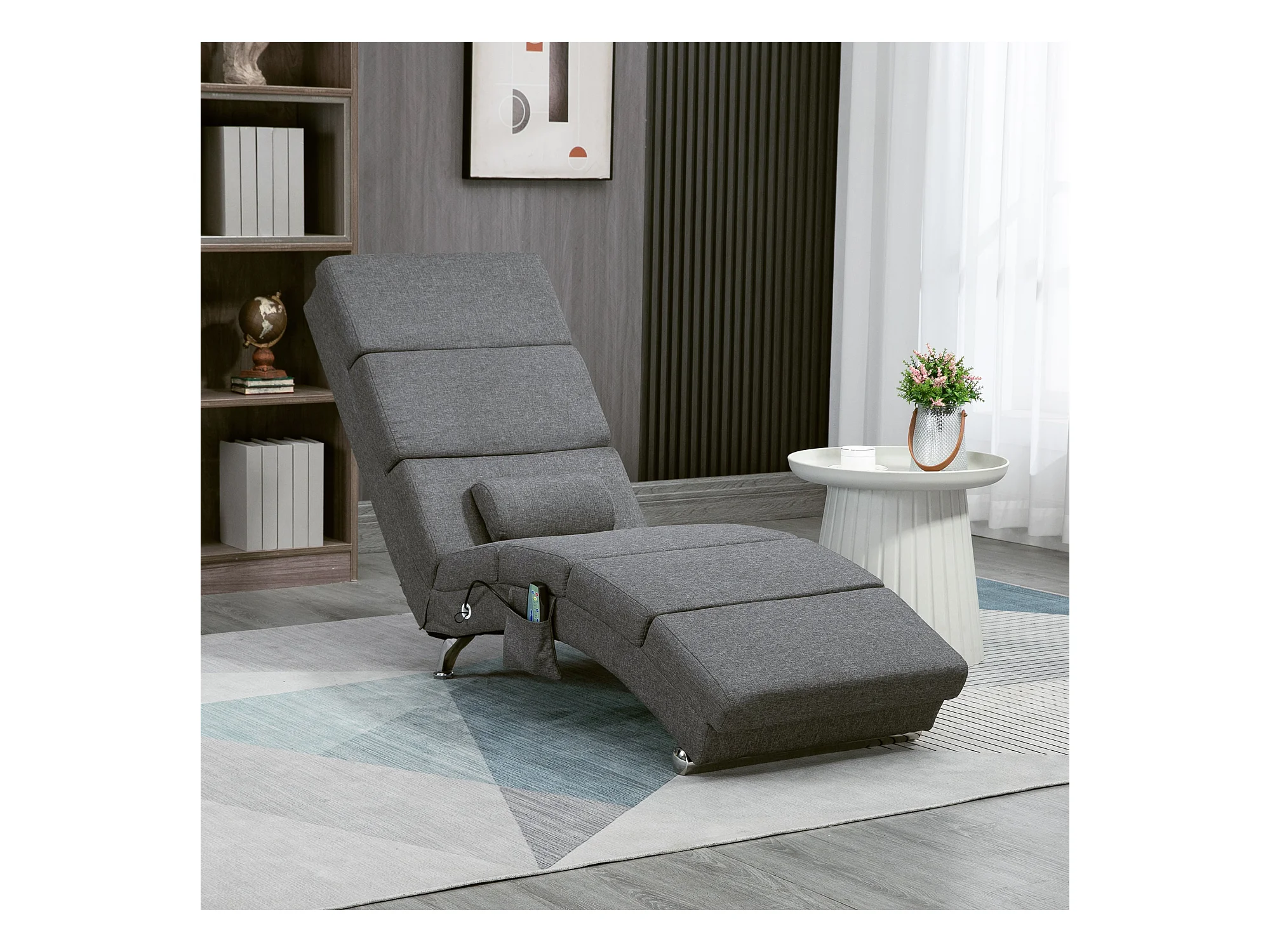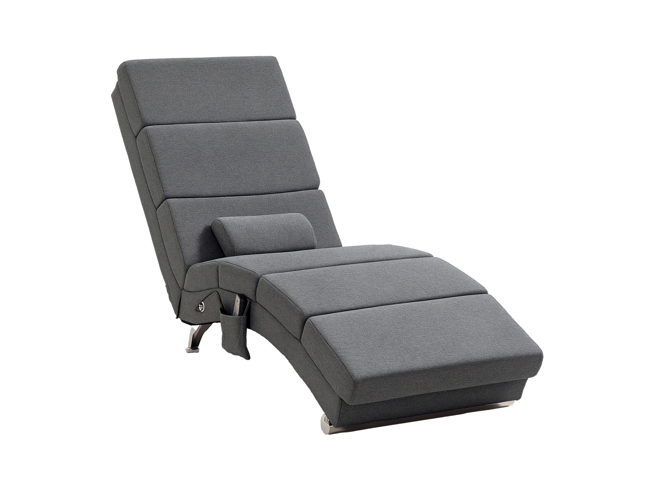 Fauteuil relax massant chauffant design contemporain - chaise longue d'intérieur - piètement métal chromé tissu gris