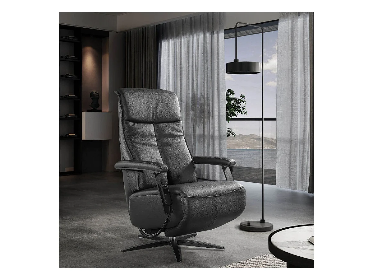 Fauteuil relax pivotant releveur en cuir vachette noir - CENTAURE