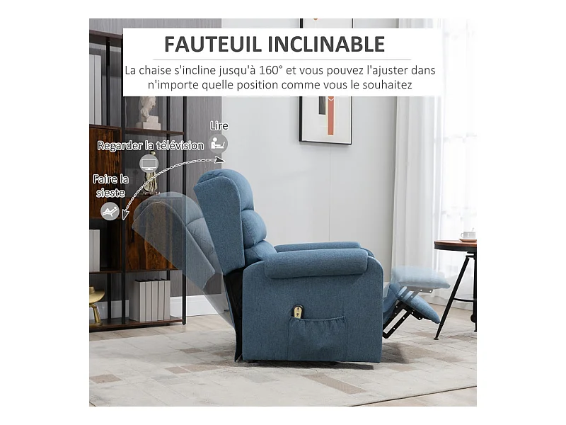 Fauteuil releveur de relaxation inclinable tissu bleu