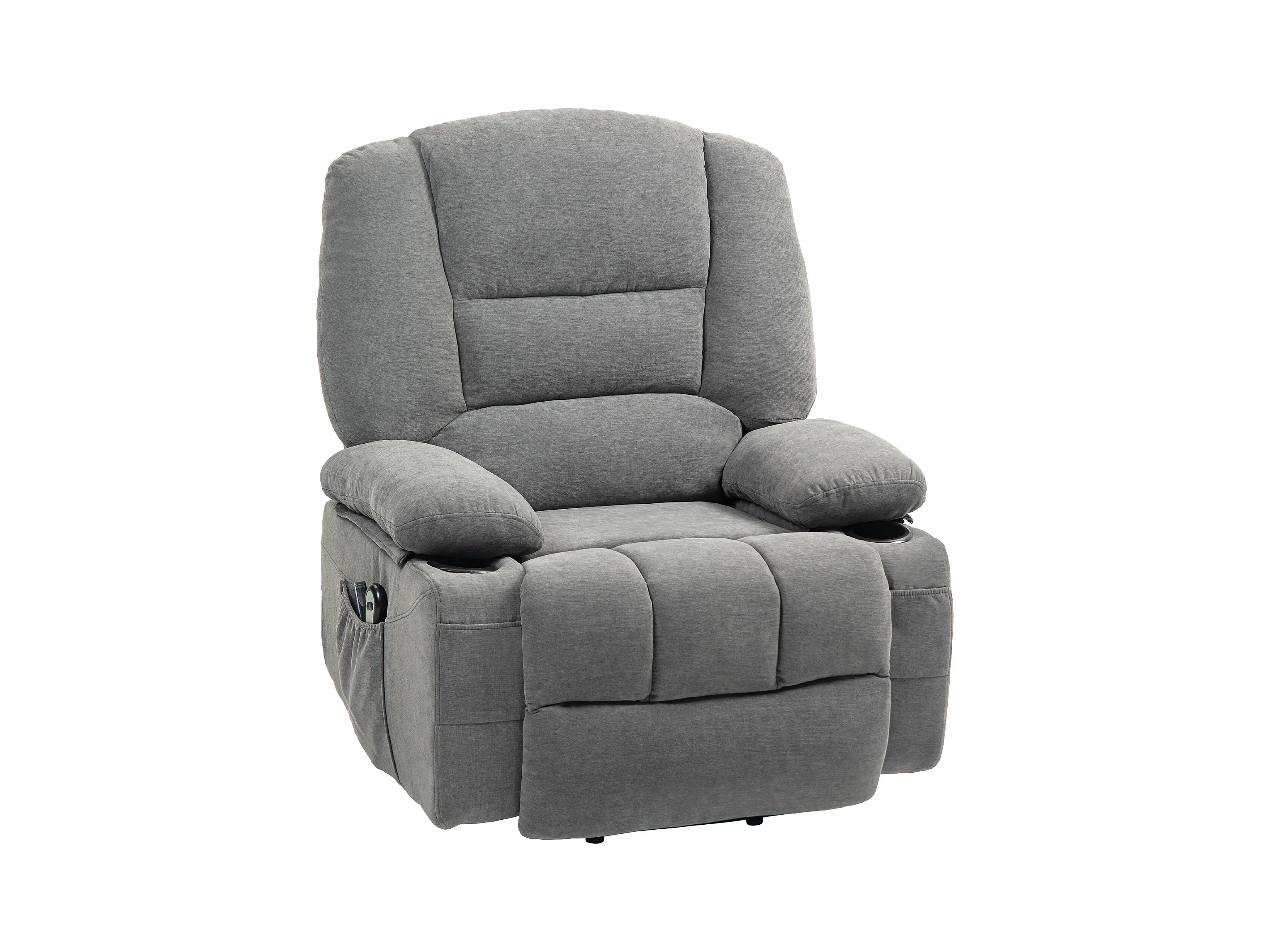Fauteuil releveur électrique massant chauffant inclinable - repose-pied intégré, 2 télécommandes - tissu gris