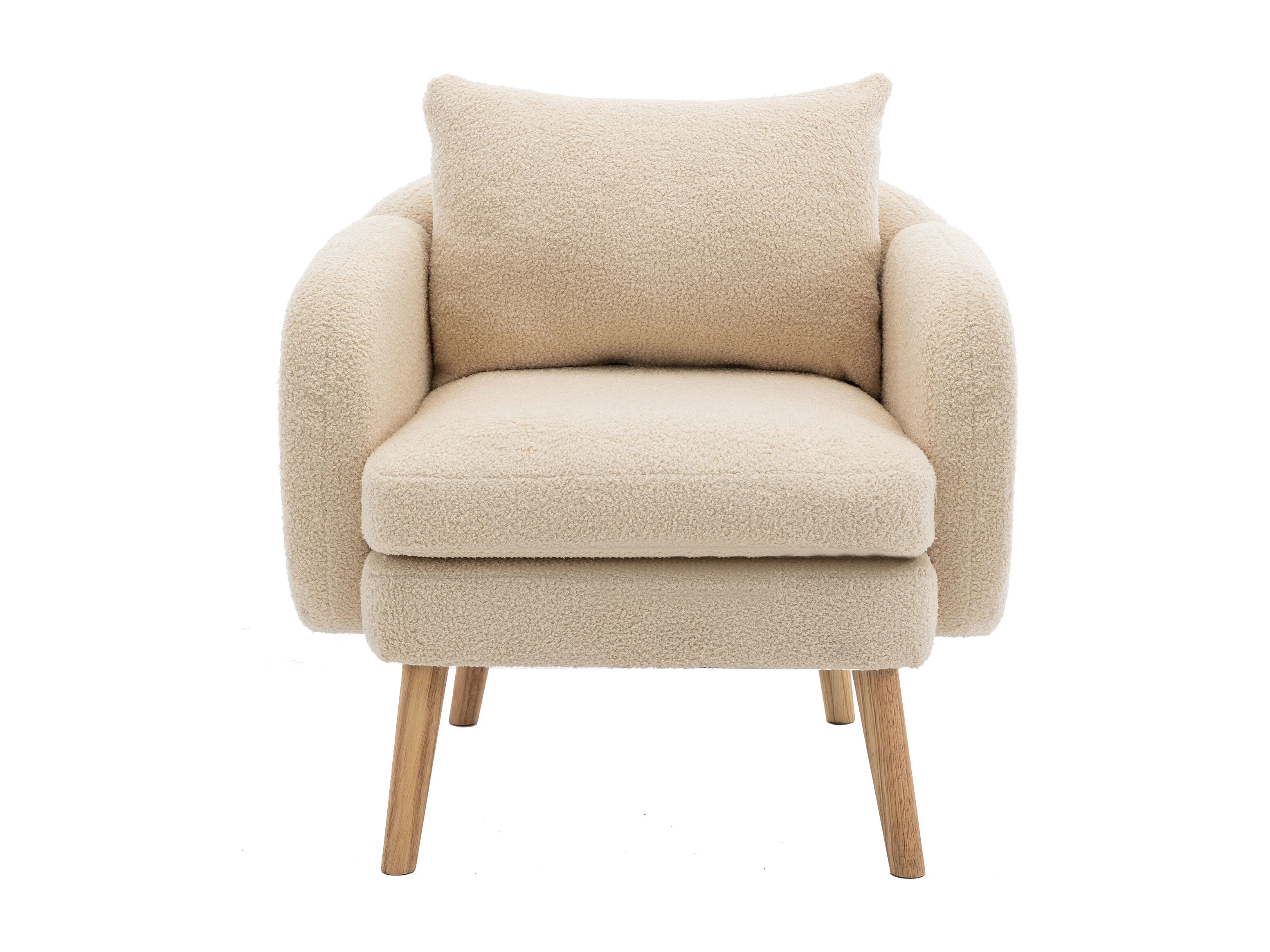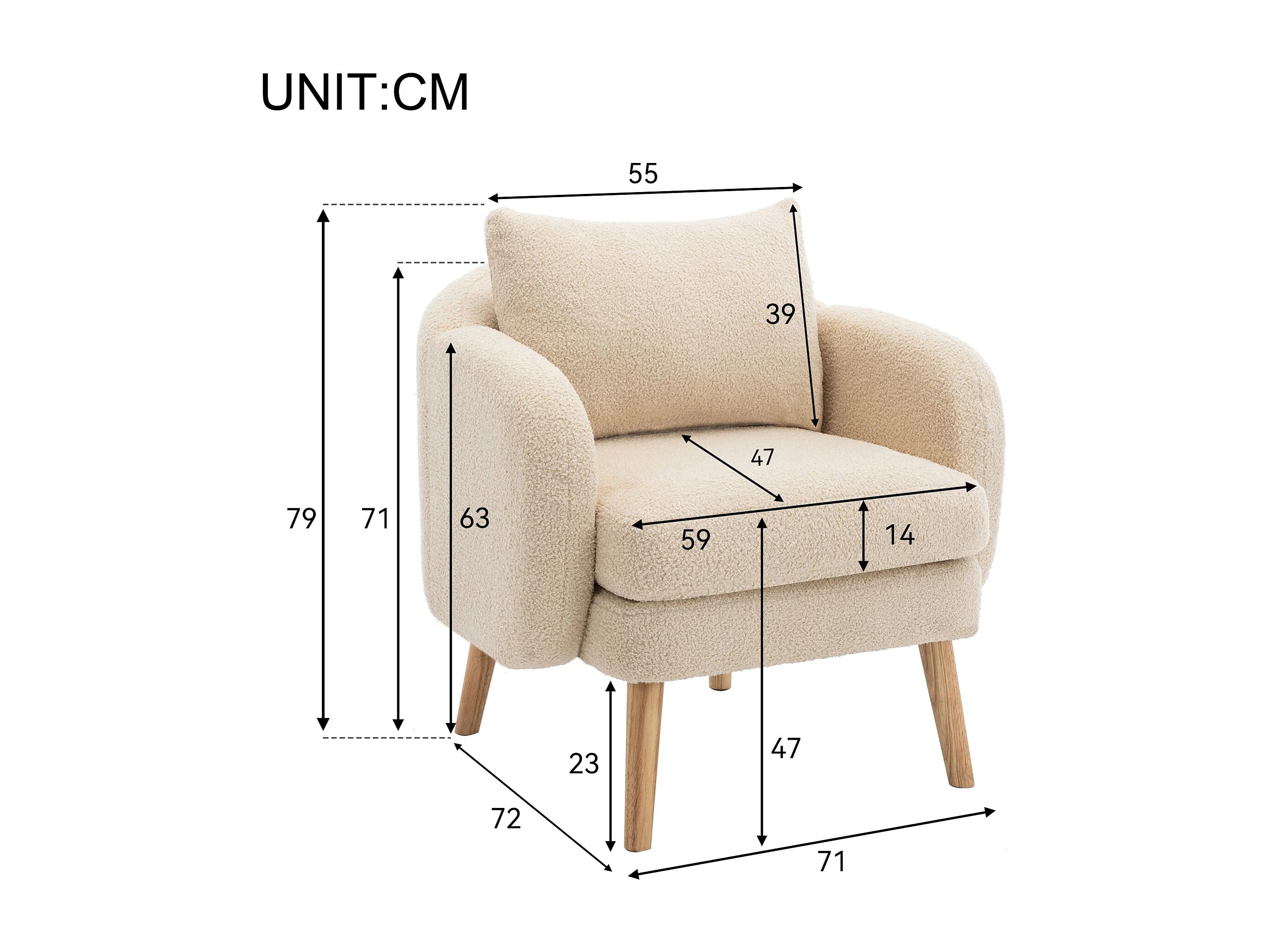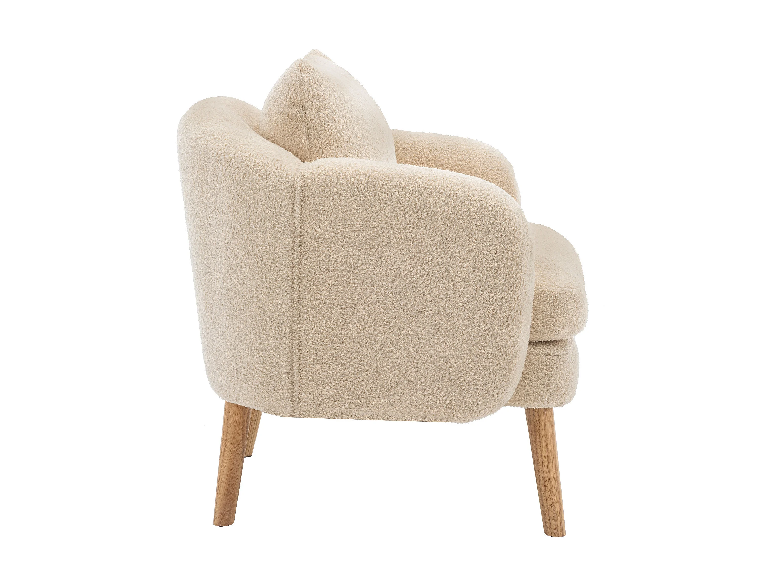Chaise à manger en velours teddy - chaise individuelle avec pieds en bois - coussin épais - beige