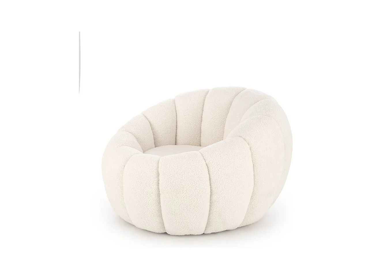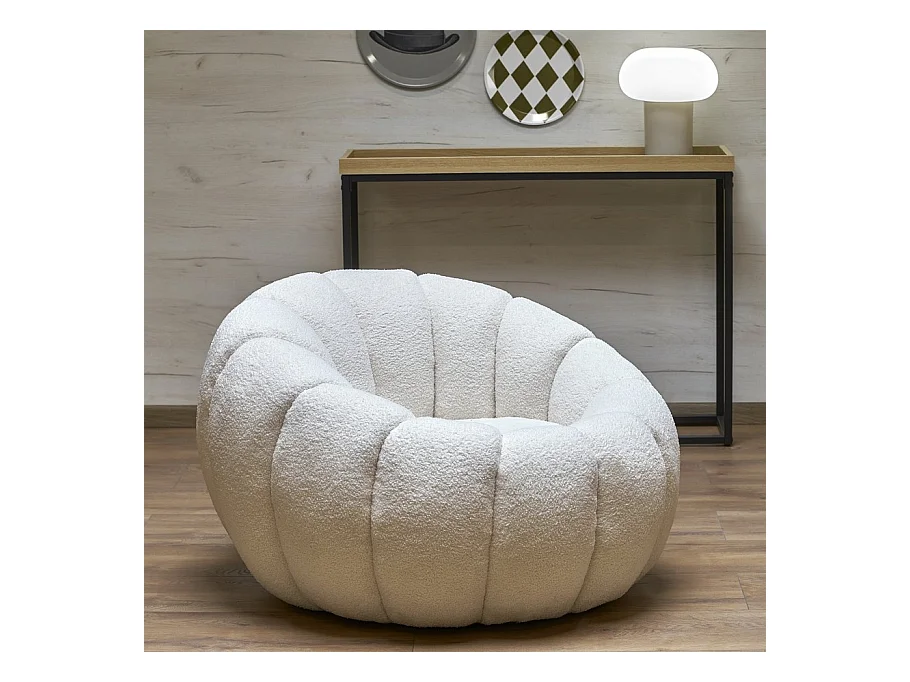 Fauteuil rond coquillage en tissu bouclette crème Alix