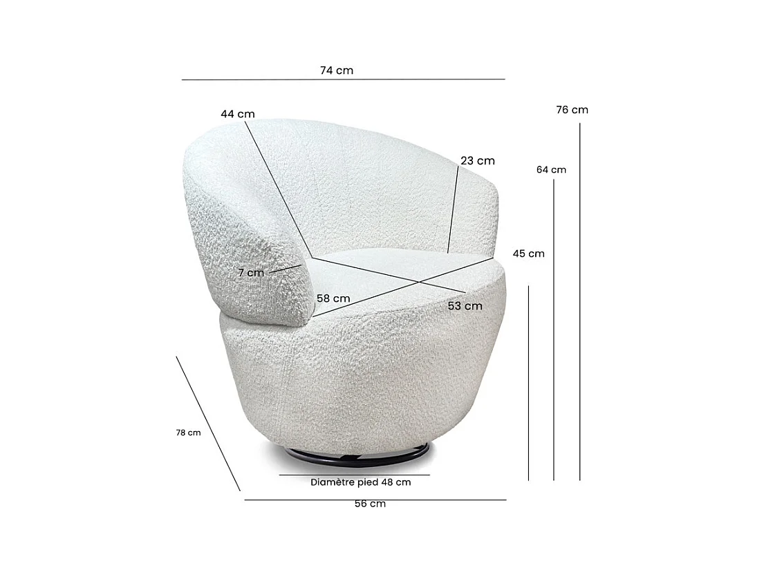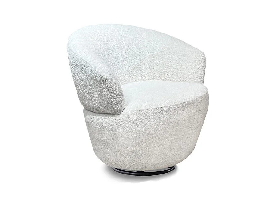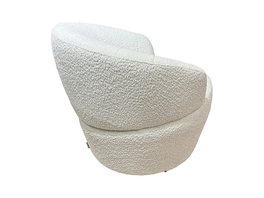 Fauteuil rond pivotant 360° tissu bouclé blanc cassé – COROLLA