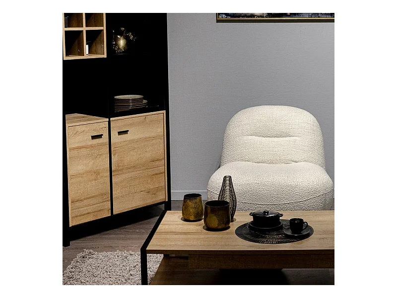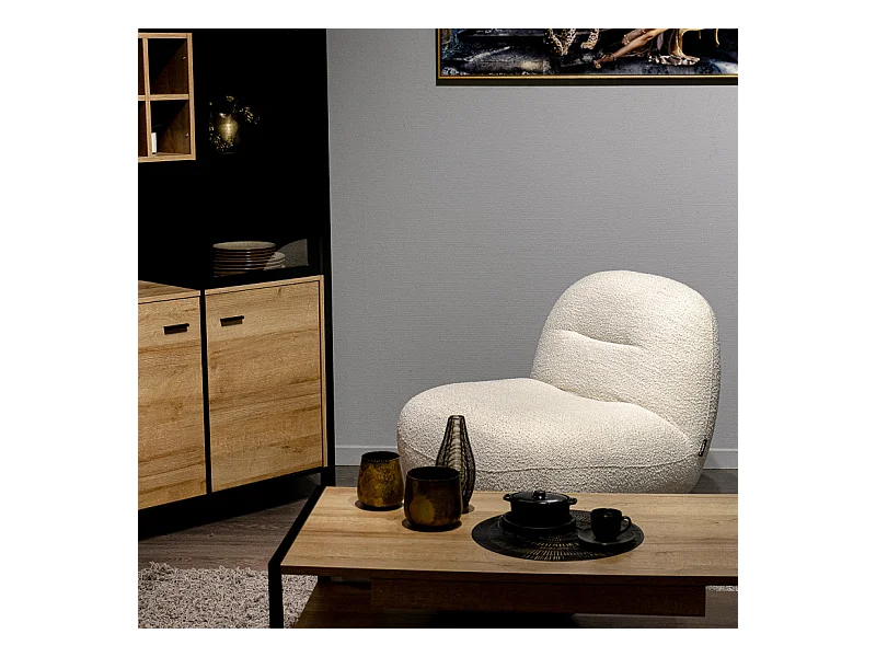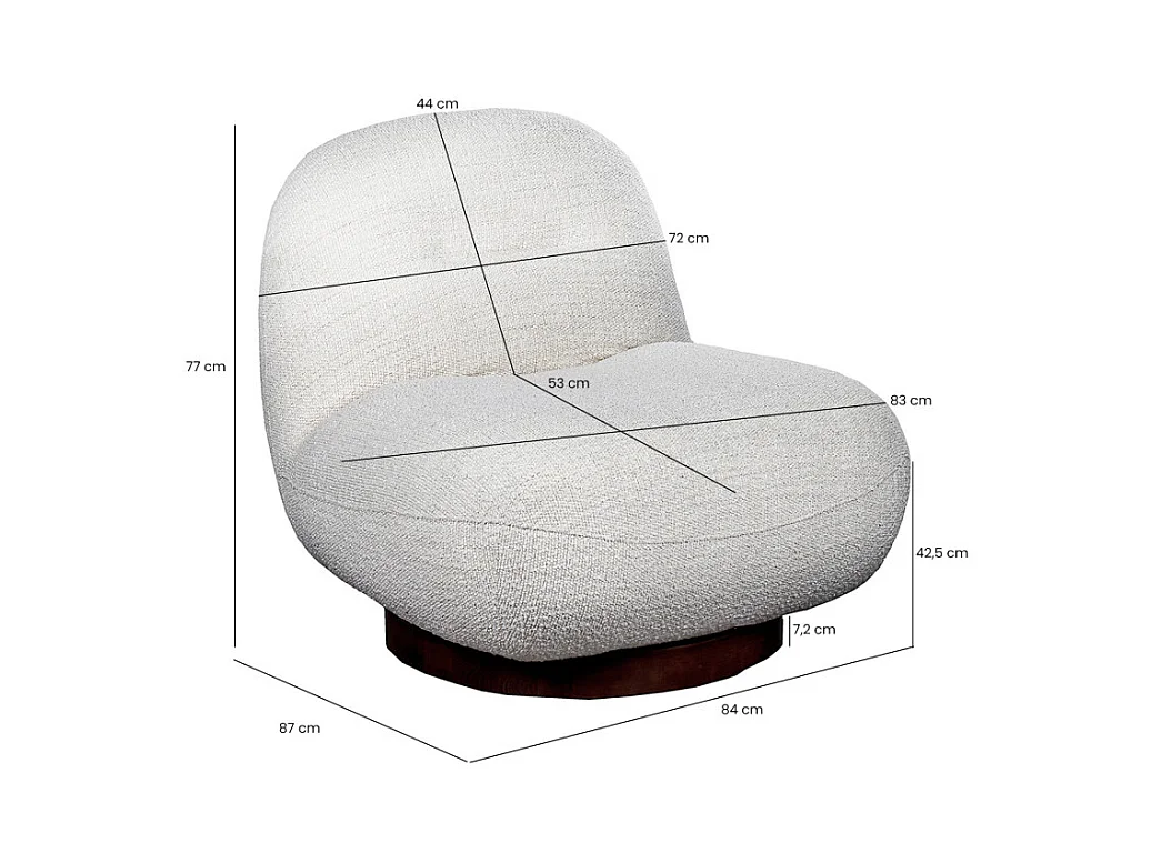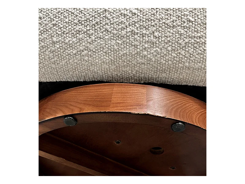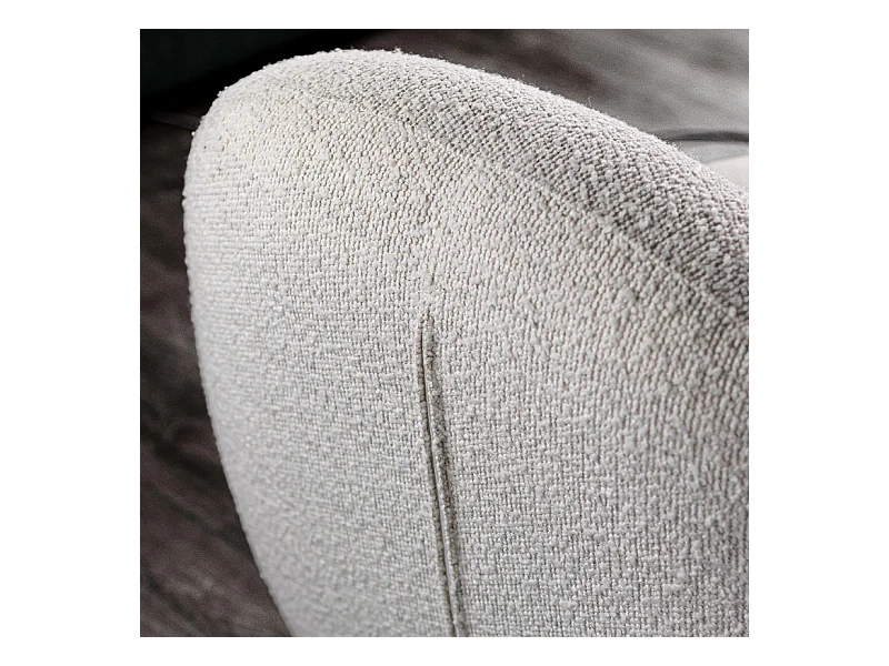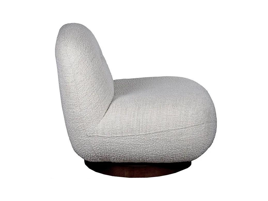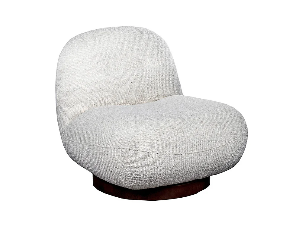 Fauteuil rotatif 360° en tissu bouclette écru pied noyer – CORALINE