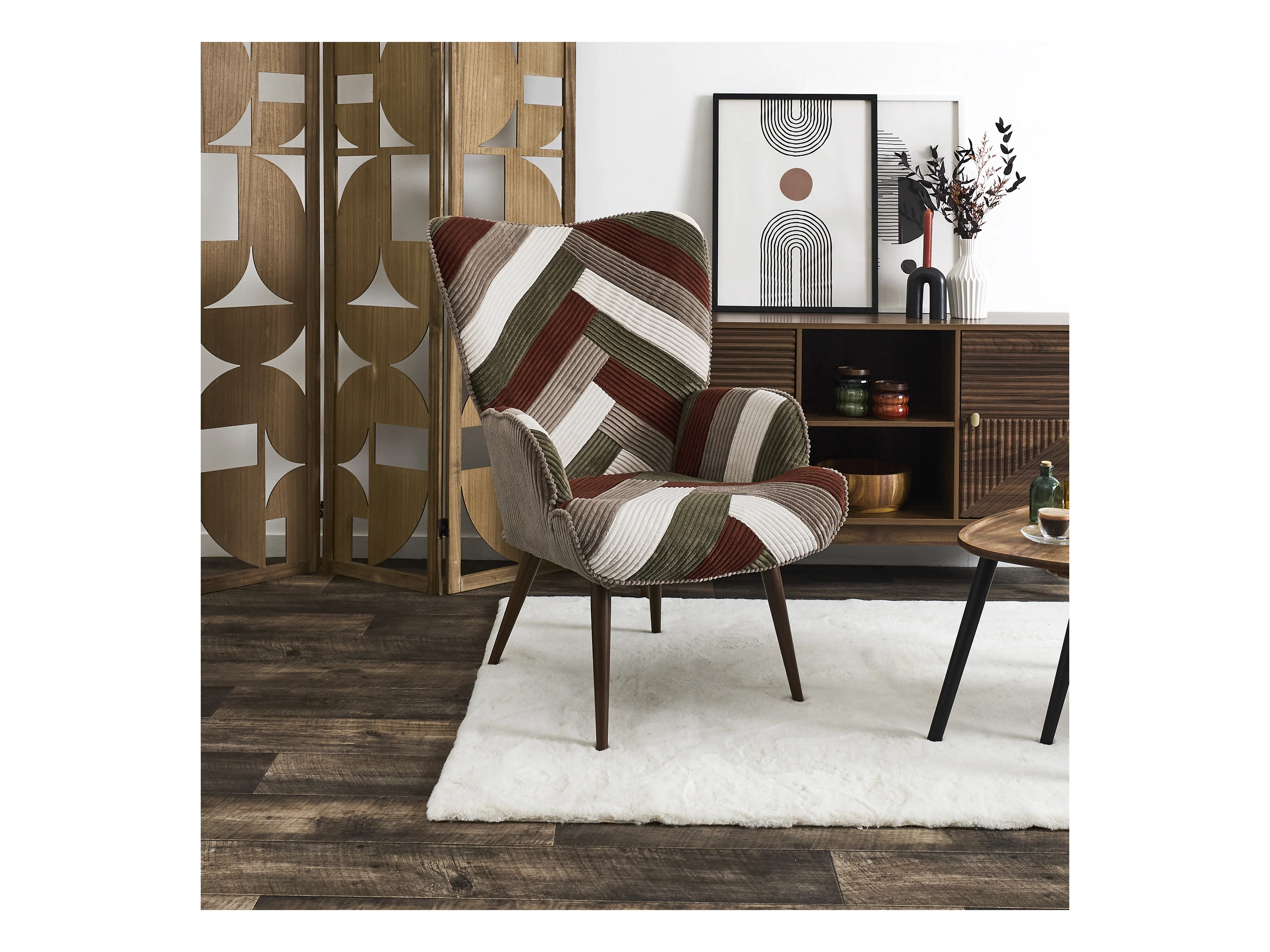 Fauteuil Salon Patchwork Cotele Scott Beige, Gris, Rouge, Vert