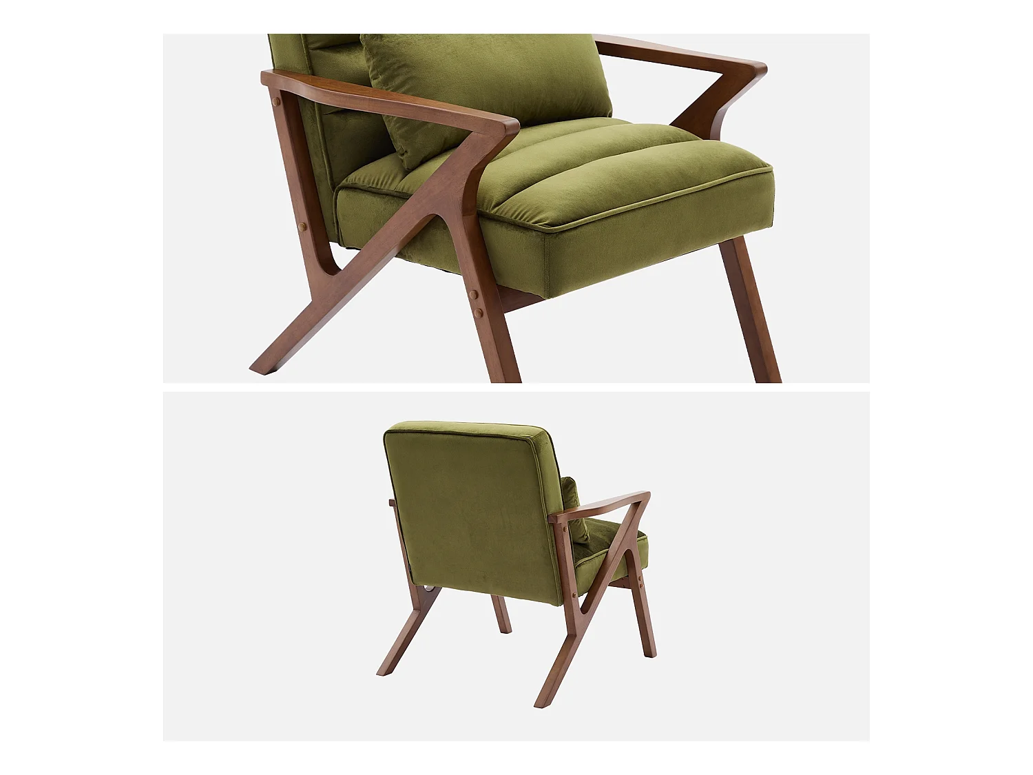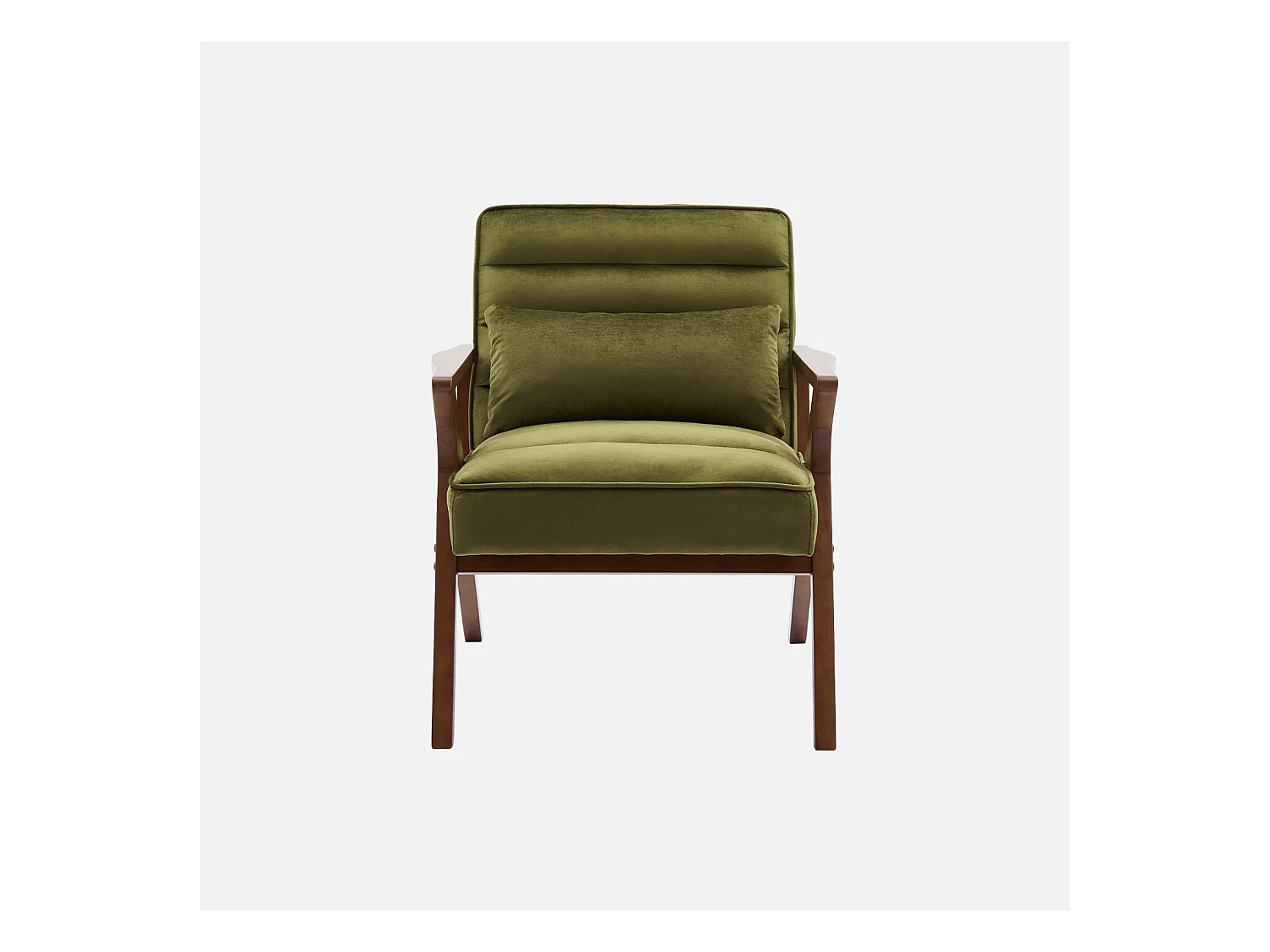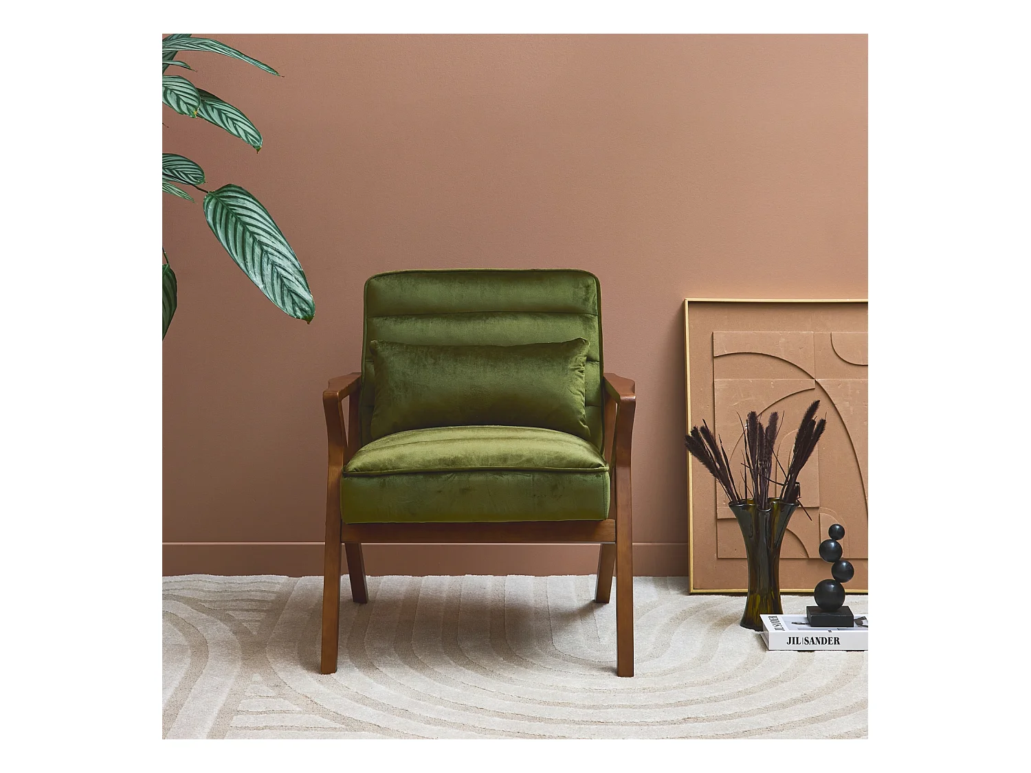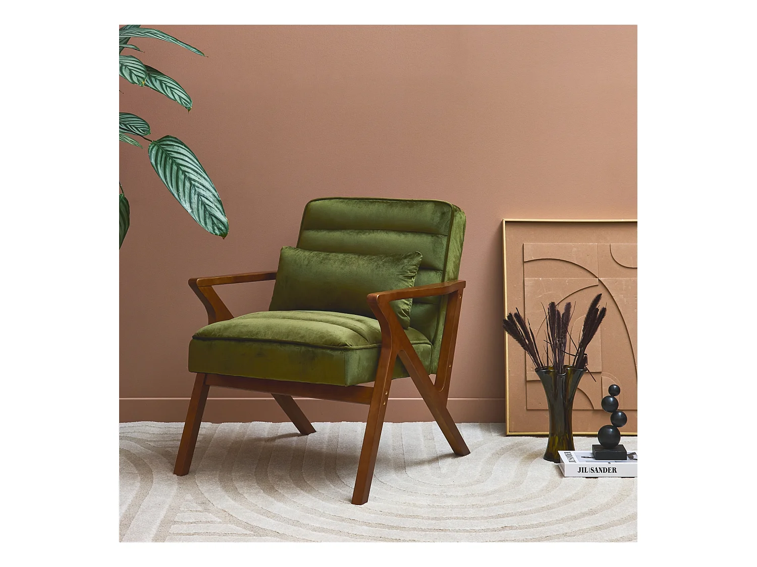 Fauteuil scandinave bois d'hévéa et velours kaki