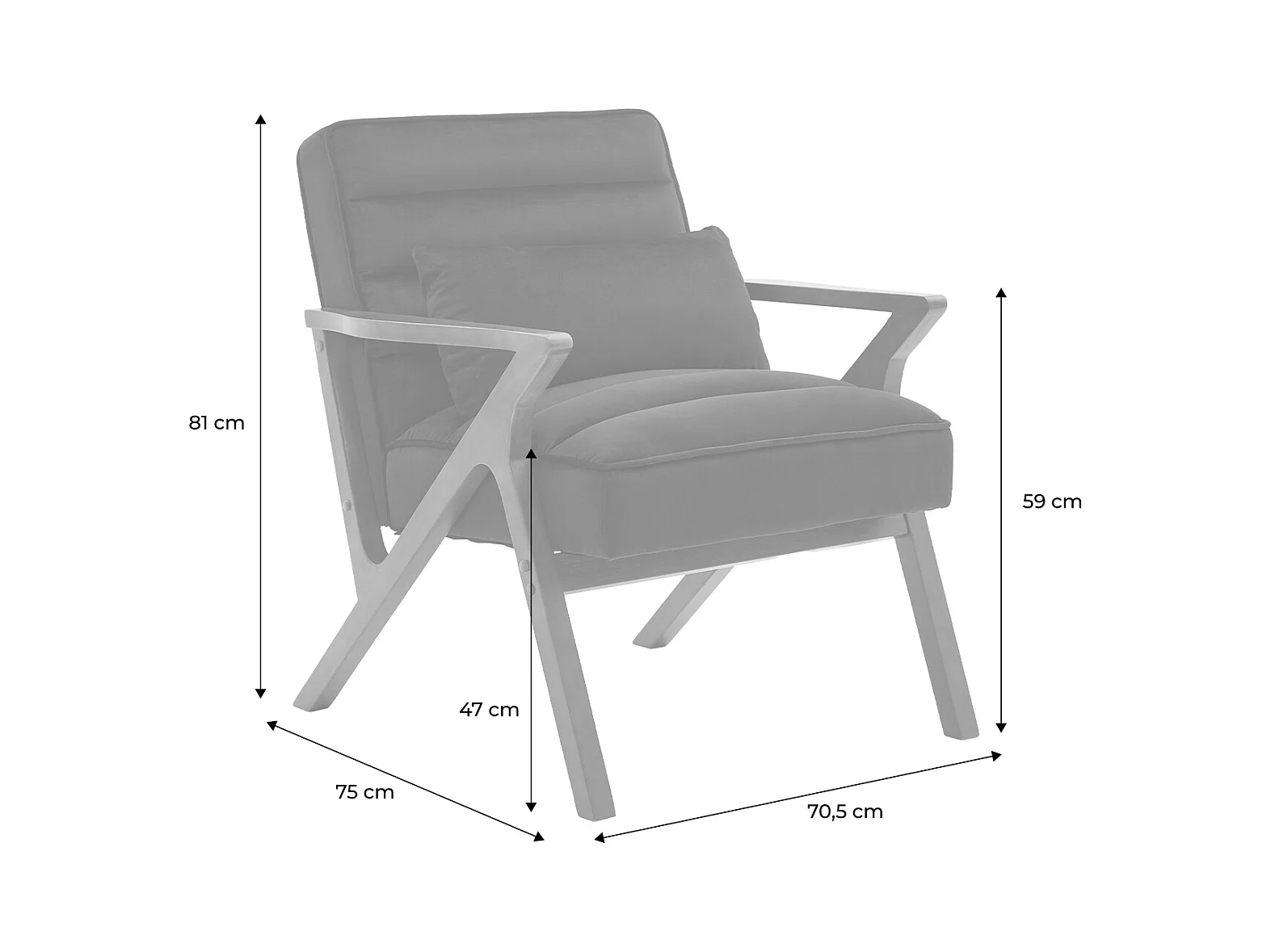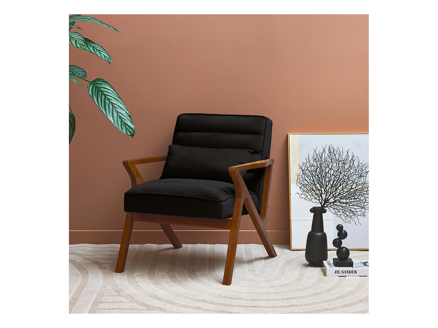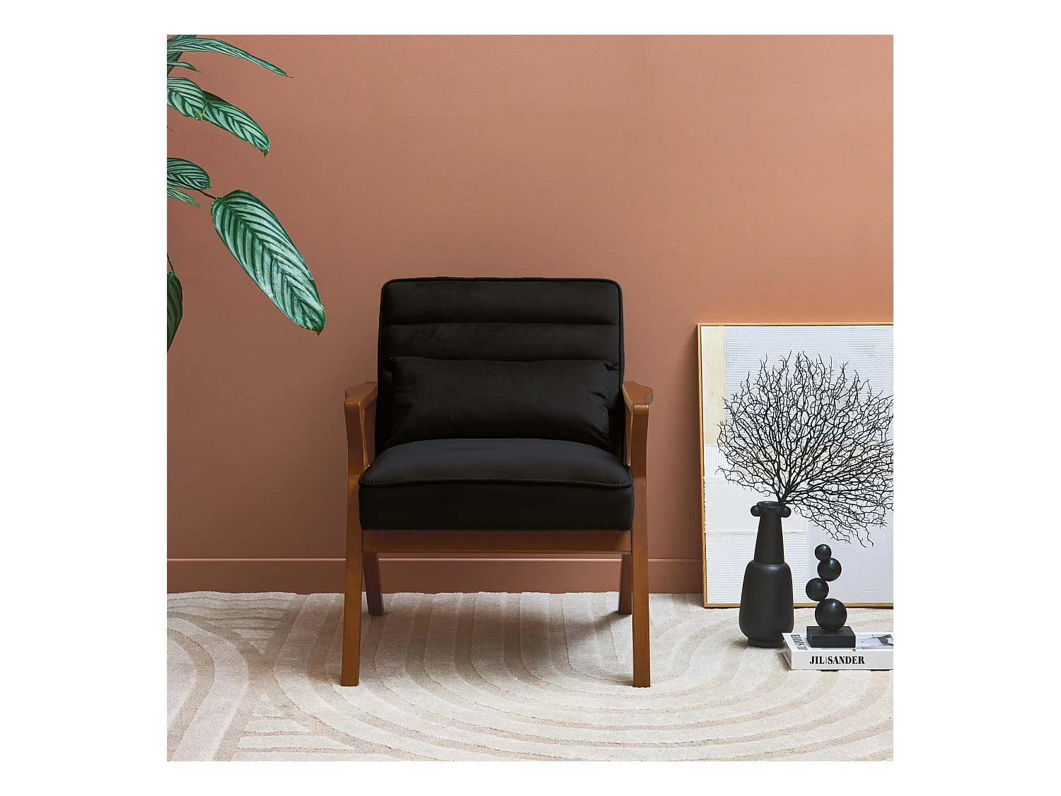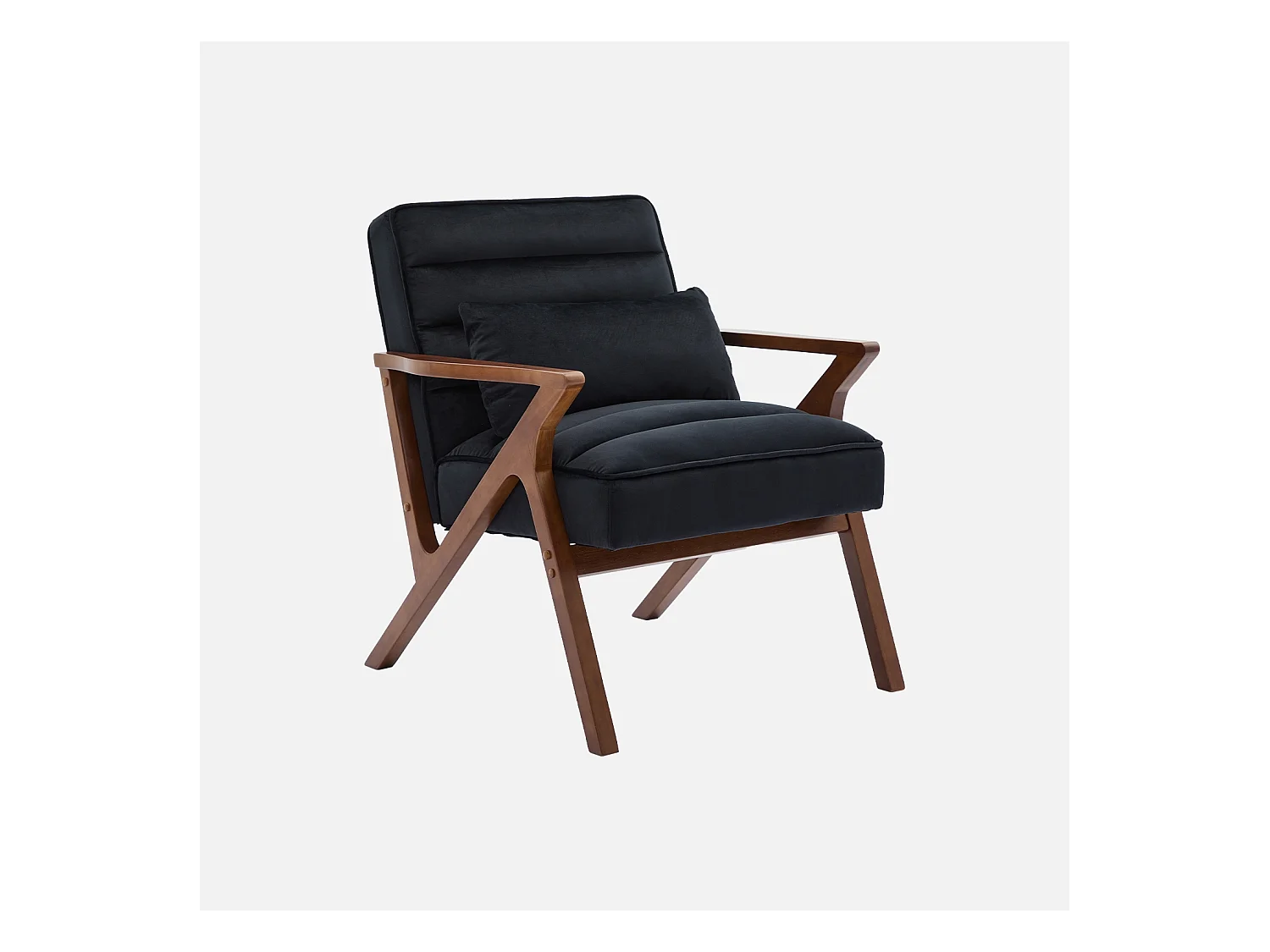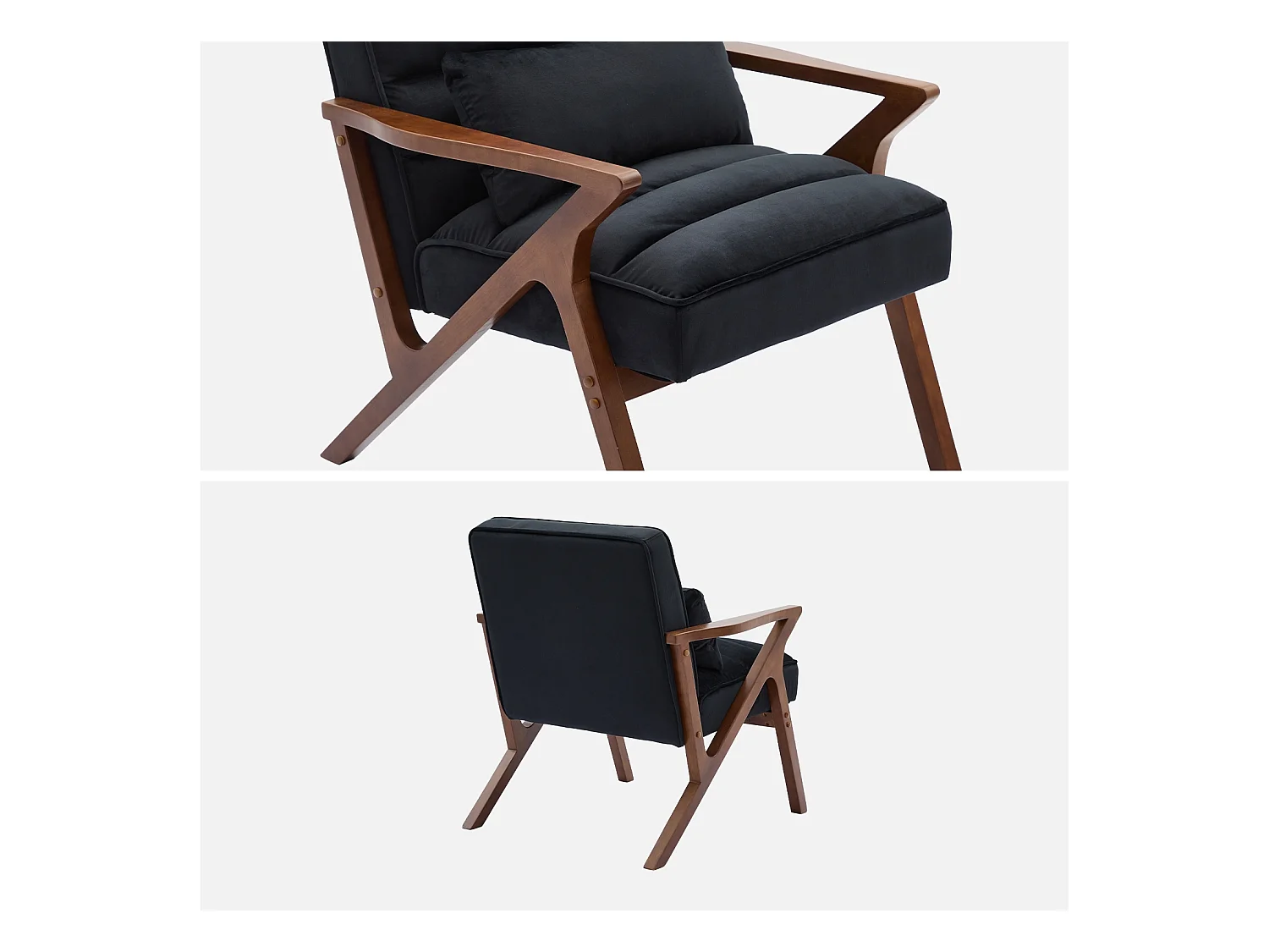 Fauteuil scandinave bois d'hévéa et velours noir