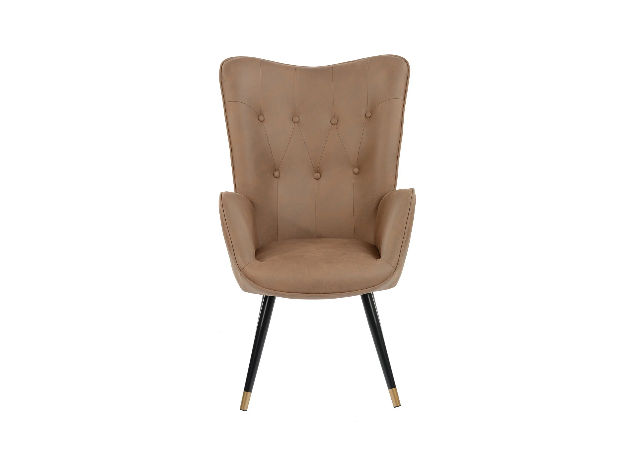 Fauteuil scandinave capitonné en tissu vintage rétro pieds points dorés KAS FABRIC BROWN BLACK GOLD LEG