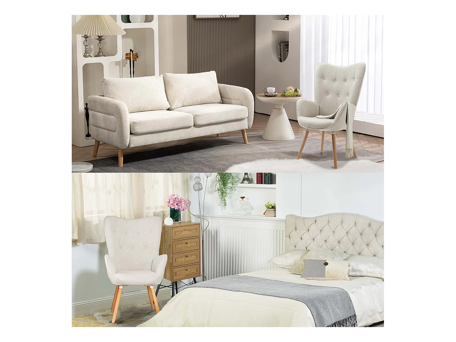 MEUBLES COSY Fauteuil relax fauteuil confortable style scandinave rembourés en Tissu Pieds Bois Massif, Beige