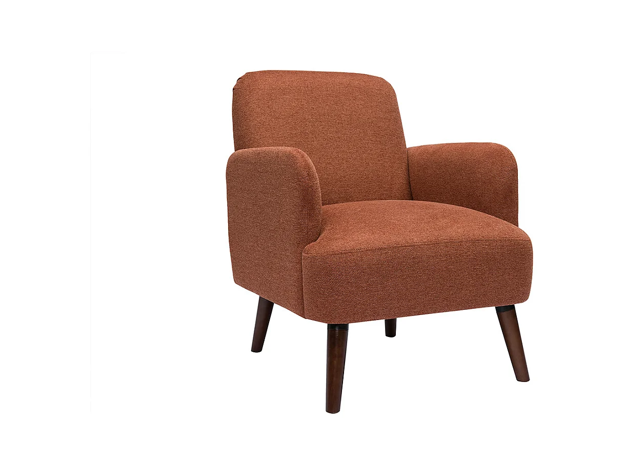 Fauteuil scandinave en tissu effet velours texturé terre brûlée et bois foncé ISKO