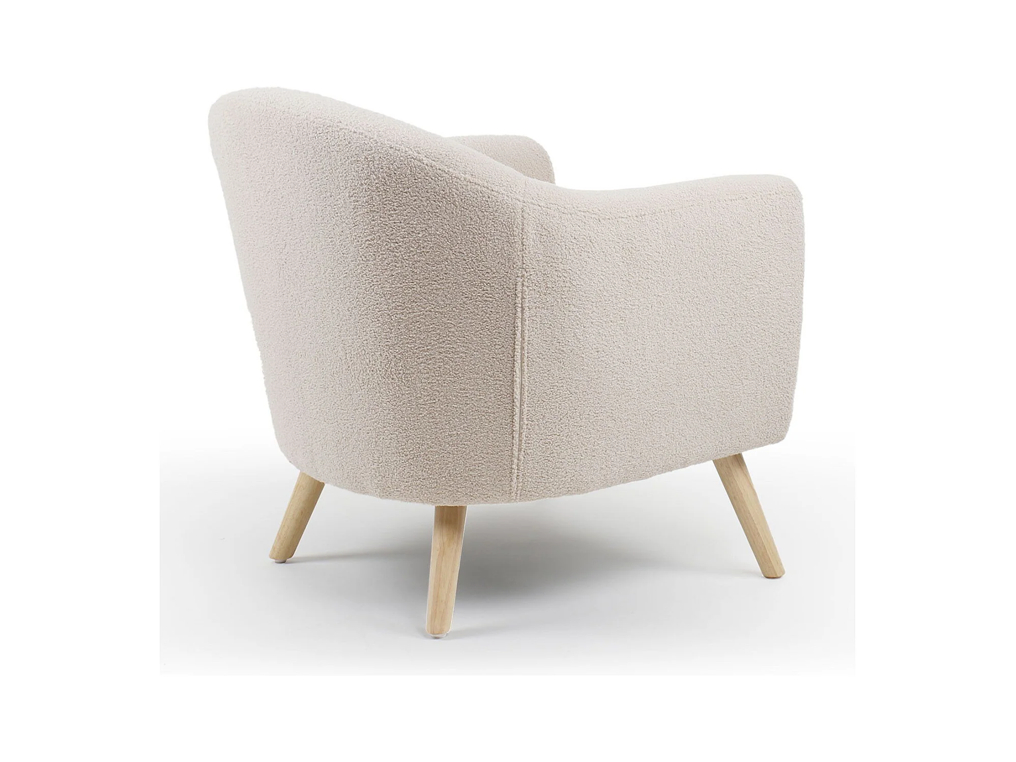 Fauteuil scandinave en tissu effet laine bouclée blanc cassé et bois clair VALMY