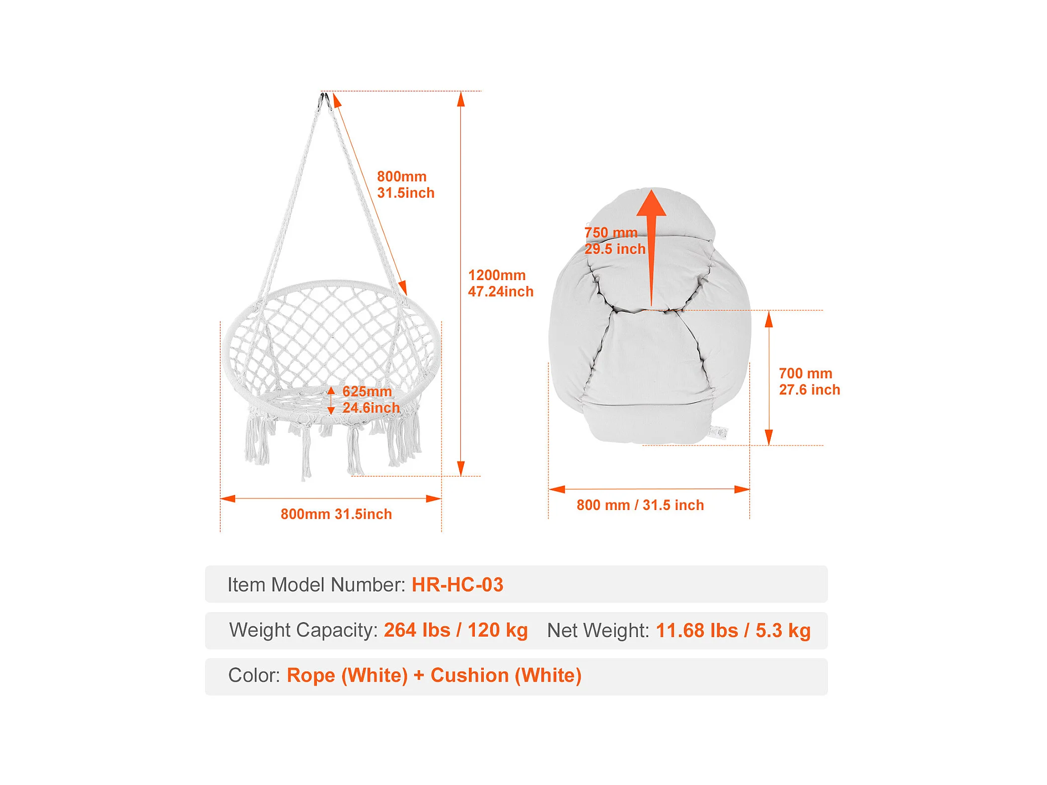 Fauteuil Suspendu Chaise Hamac Suspendue SucceBuy 119.75kg