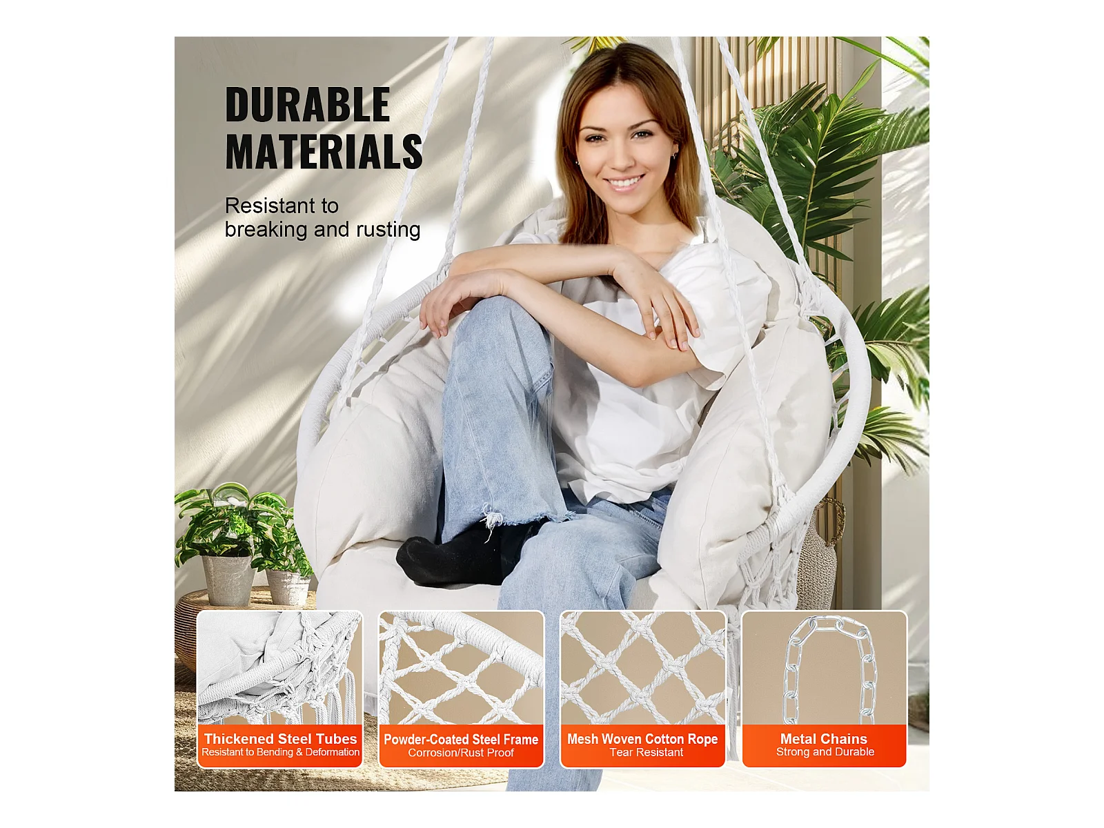 Fauteuil Suspendu Chaise Hamac Suspendue SucceBuy 149.69kg Beige
