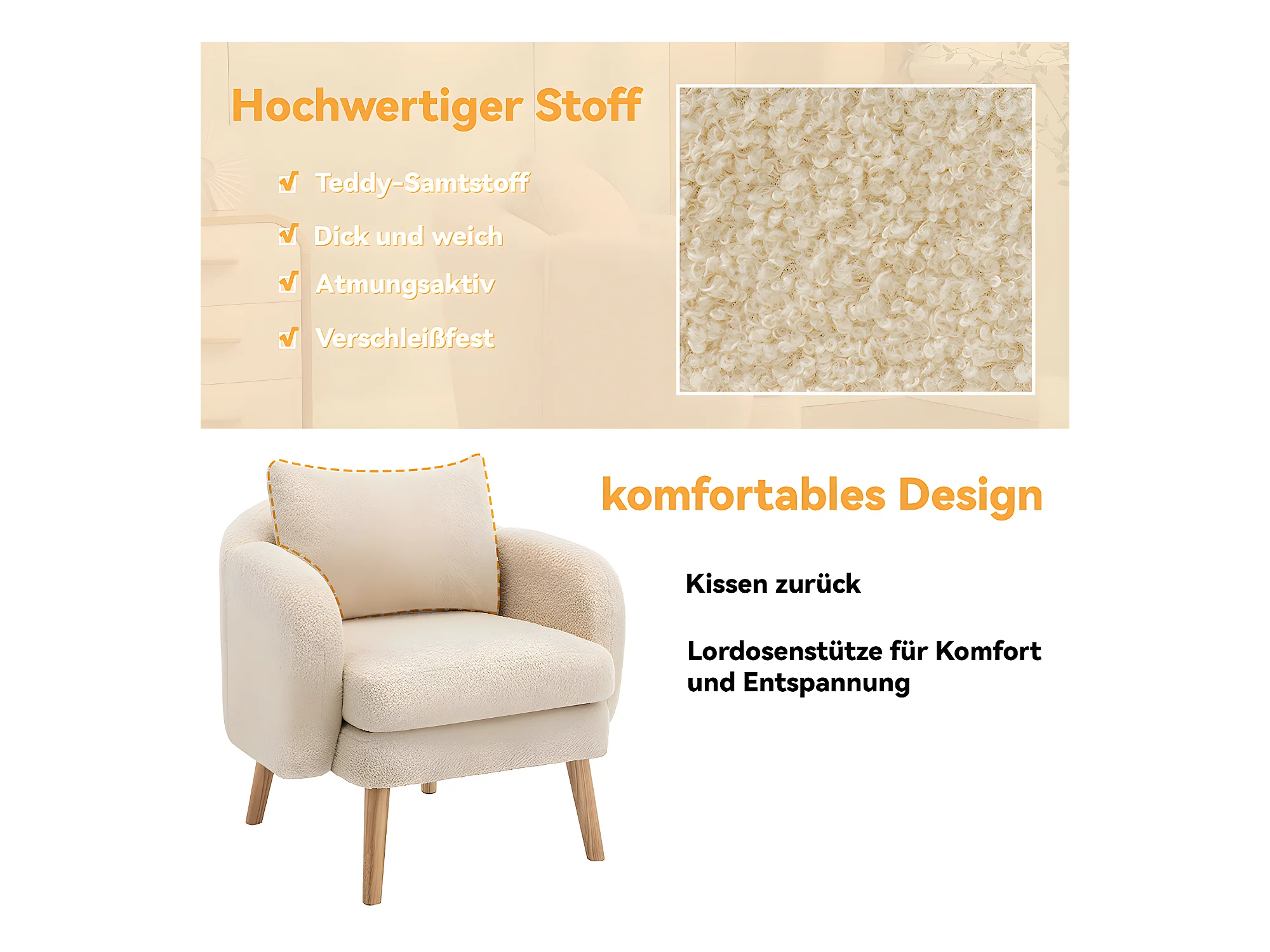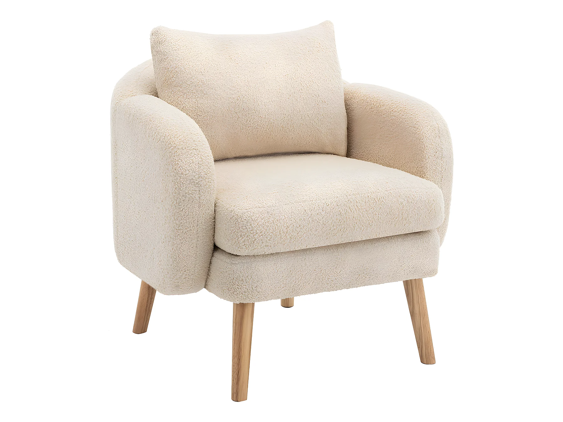 Fauteuil tissu en Teddy - pieds dorés en métal - Beige - Sweiko