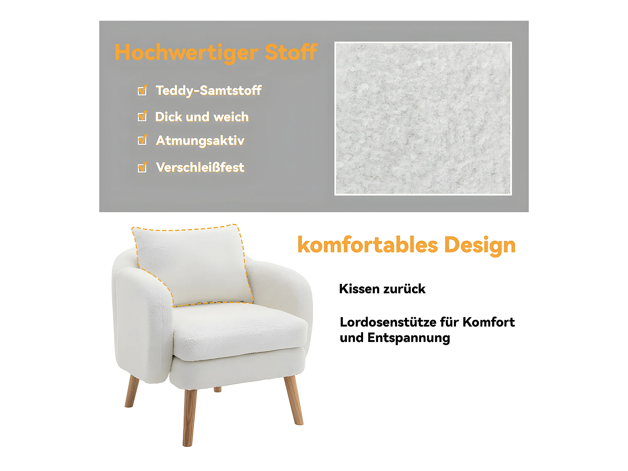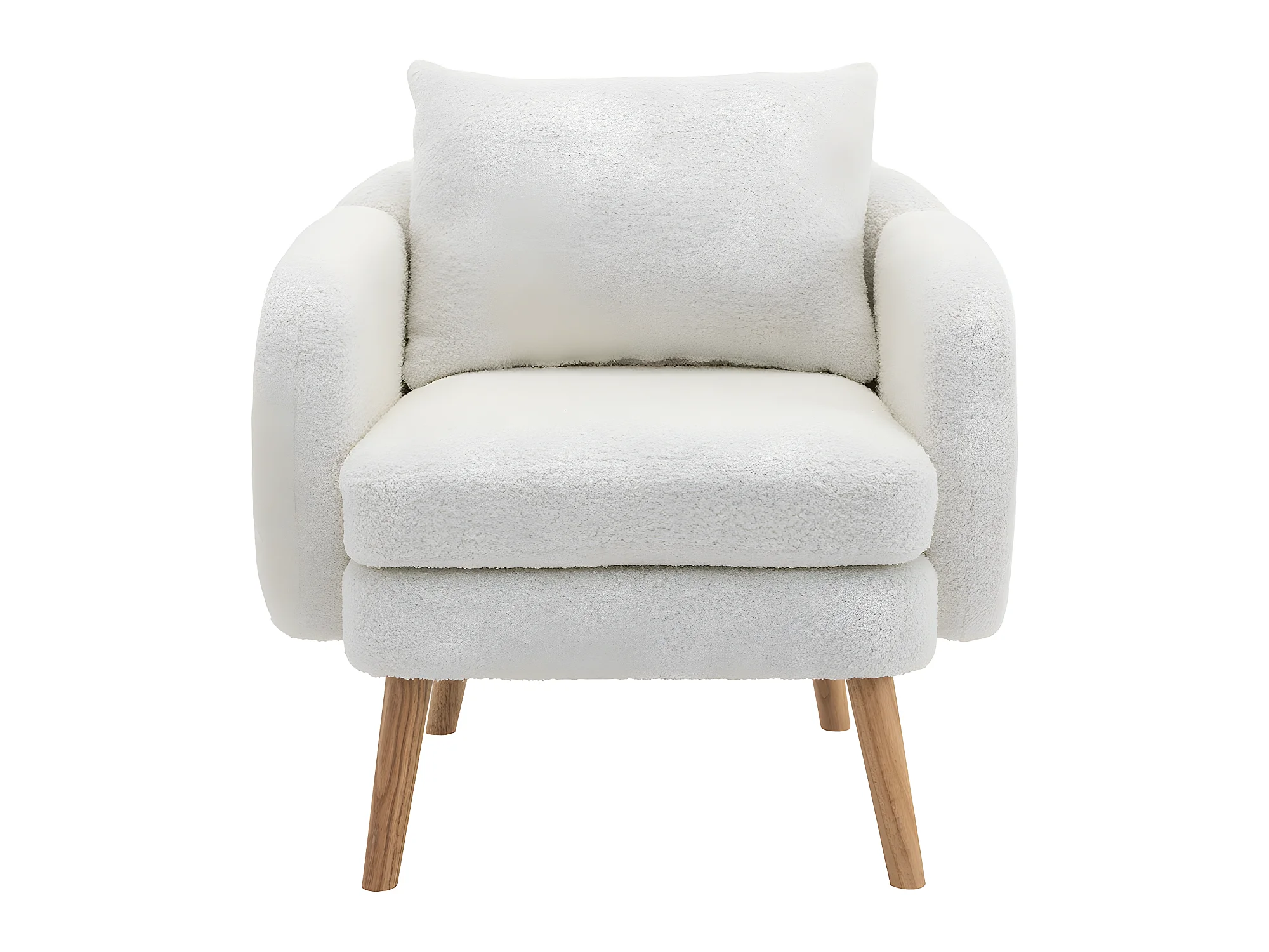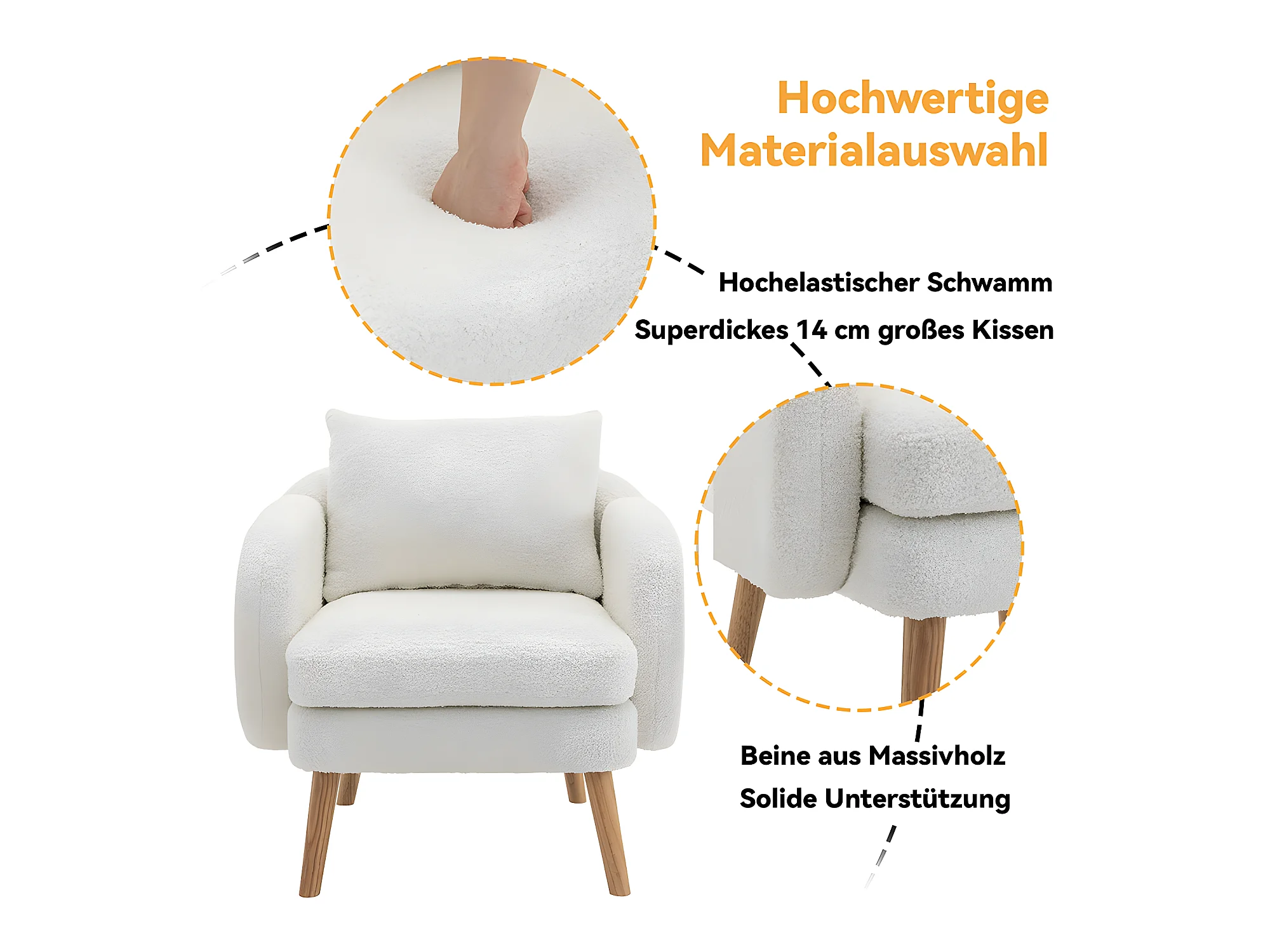 Fauteuil tissu en Teddy - pieds dorés en métal - Blanc - Sweiko